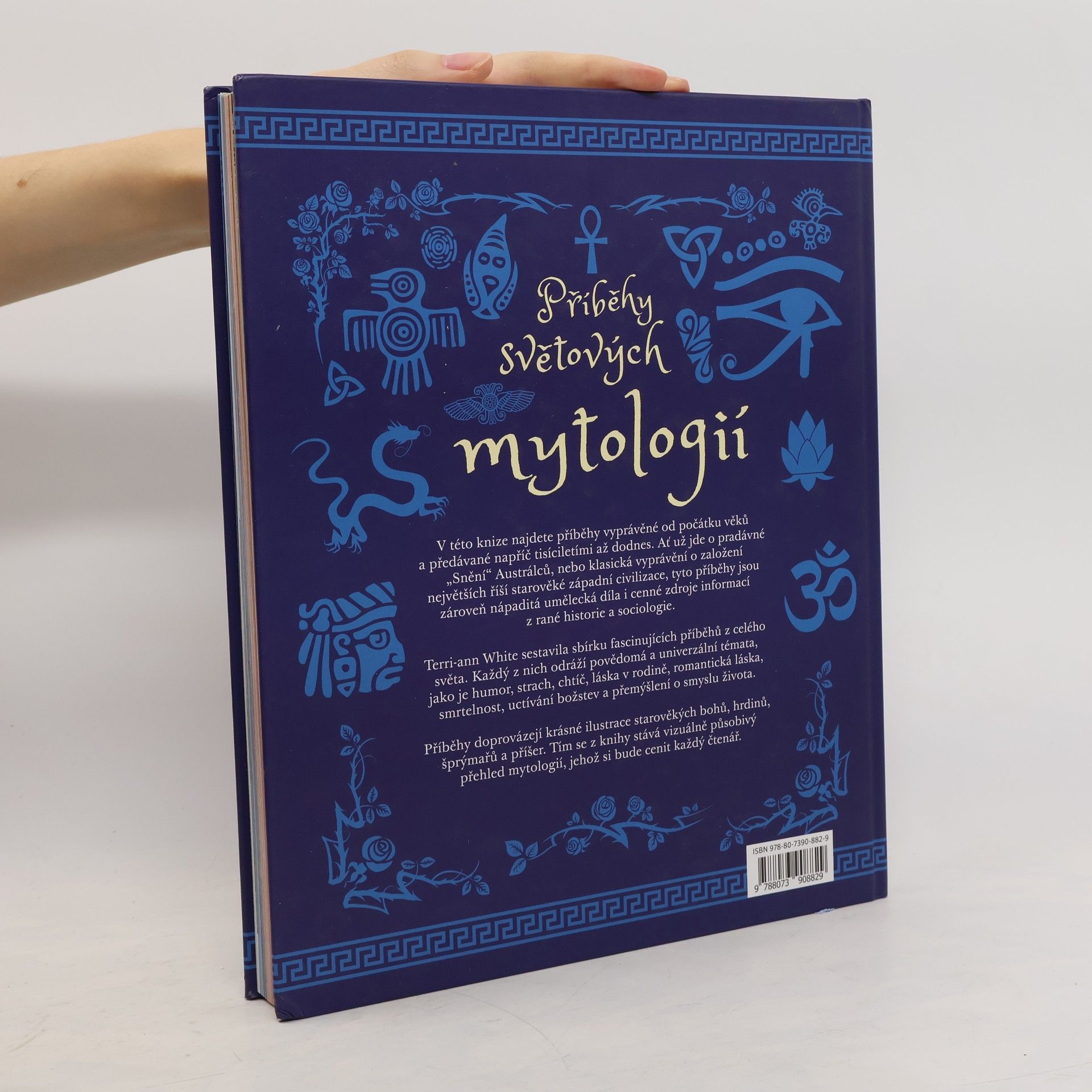 V této knize najdete příběhy vyprávěné od počátku věků a předávané napříč tisíciletími až dodnes. Ať už jde o pradávné „Snění“ Austrálců nebo klasická vyprávění o založení největších říší starověké západní civilizace, tyto příběhy jsou zároveň nápaditá umělecká díla i cenné zdroje informací z rané historie a sociologie. Terri-ann Whiteová sestavila sbírku fascinujících příběhů z celého světa. Každý z nich odráží povědomá a univerzální témata jako je humor, strach, chtíč, láska v rodině, romantická láska, smrtelnost, uctívání božstev a přemýšlení o smyslu života. Příběhy doprovází krásné ilustrace starověkých bohů, hrdinů, šprýmařů a příšer, čímž z knihy dělá vizuálně působivý zdroj pro získání přehledu o mytologiích, kterého si bude s obdivem a radostí cenit každý, kdo ho má doma.