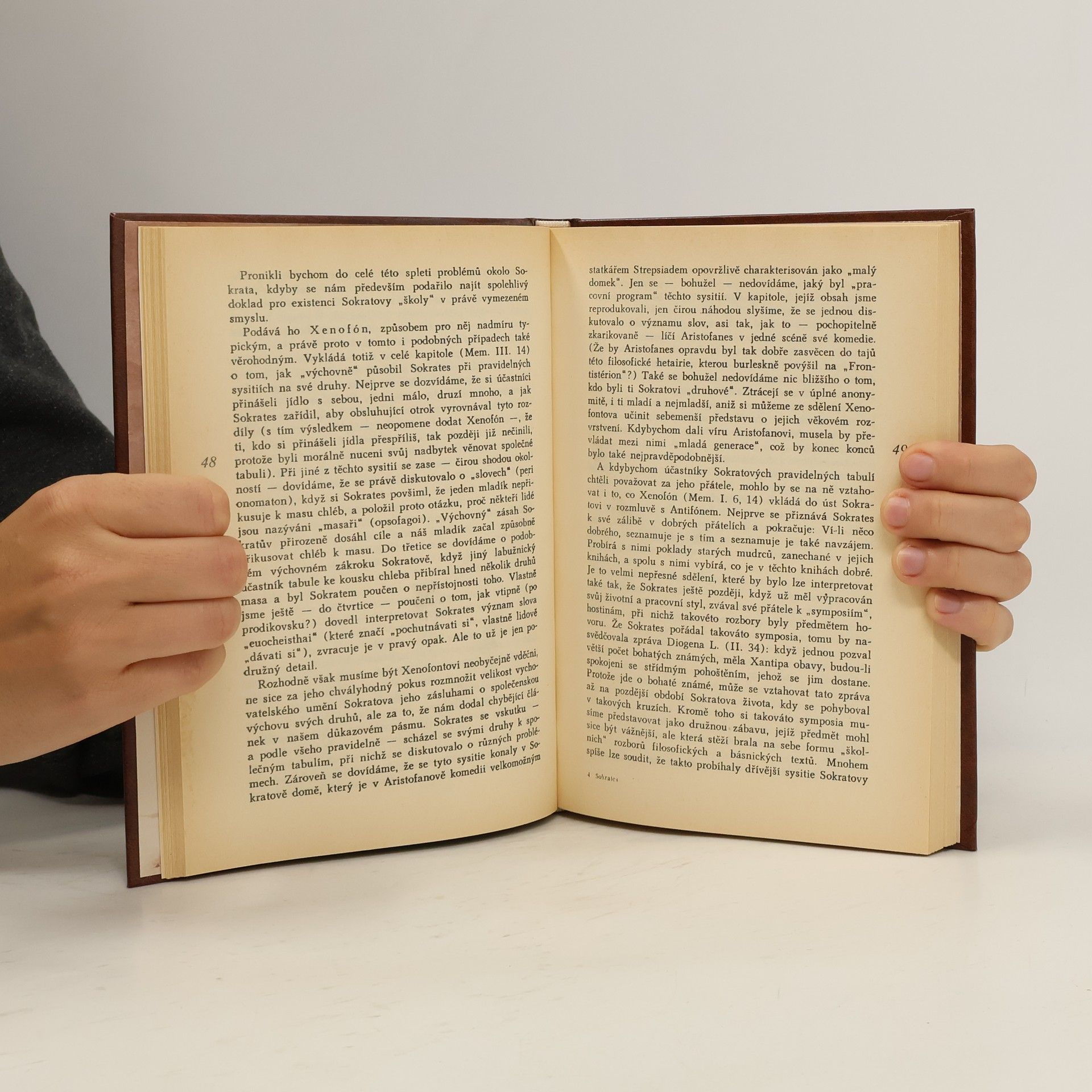 Zajímavě psaná odborná studie podrobným rozborem dochovaných svědectví o řeckém filosofu dokládá, že Sokrates "tak, jak žil a žije v obecném podvědomí, je vlastně postavou neskutečnou, nehistorickou, legendárně zidealizovanou", a že hlavní zásluhu na sokratovských legendách má jeho žák Plato. Reprint nerealizovaného vydání v nakl. Profil v Ostravě 1970