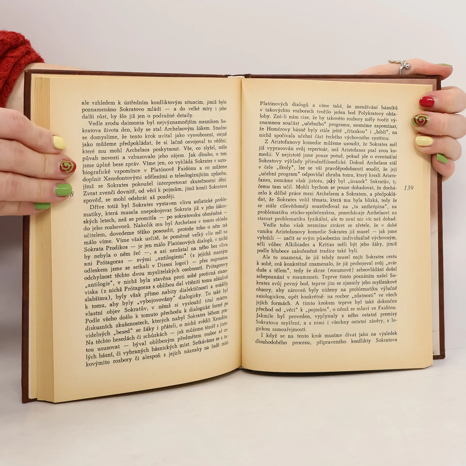 Zajímavě psaná odborná studie podrobným rozborem dochovaných svědectví o řeckém filosofu dokládá, že Sokrates "tak, jak žil a žije v obecném podvědomí, je vlastně postavou neskutečnou, nehistorickou, legendárně zidealizovanou", a že hlavní zásluhu na sokratovských legendách má jeho žák Plato. Reprint nerealizovaného vydání v nakl. Profil v Ostravě 1970