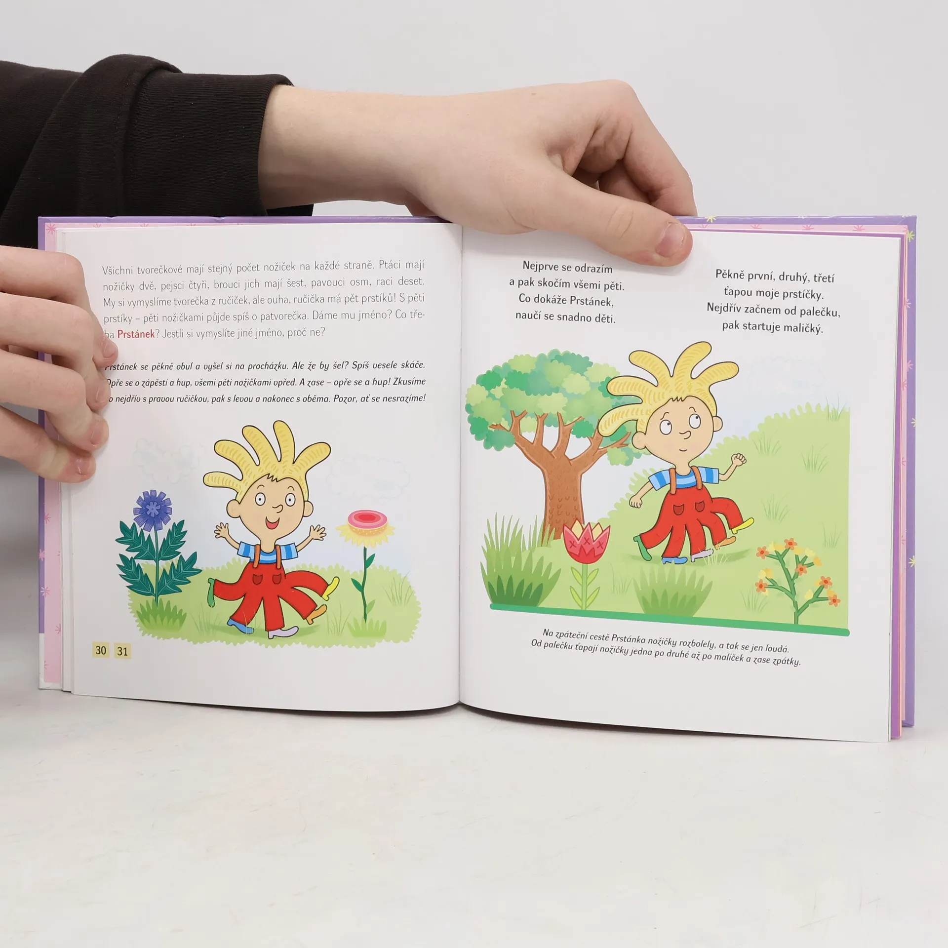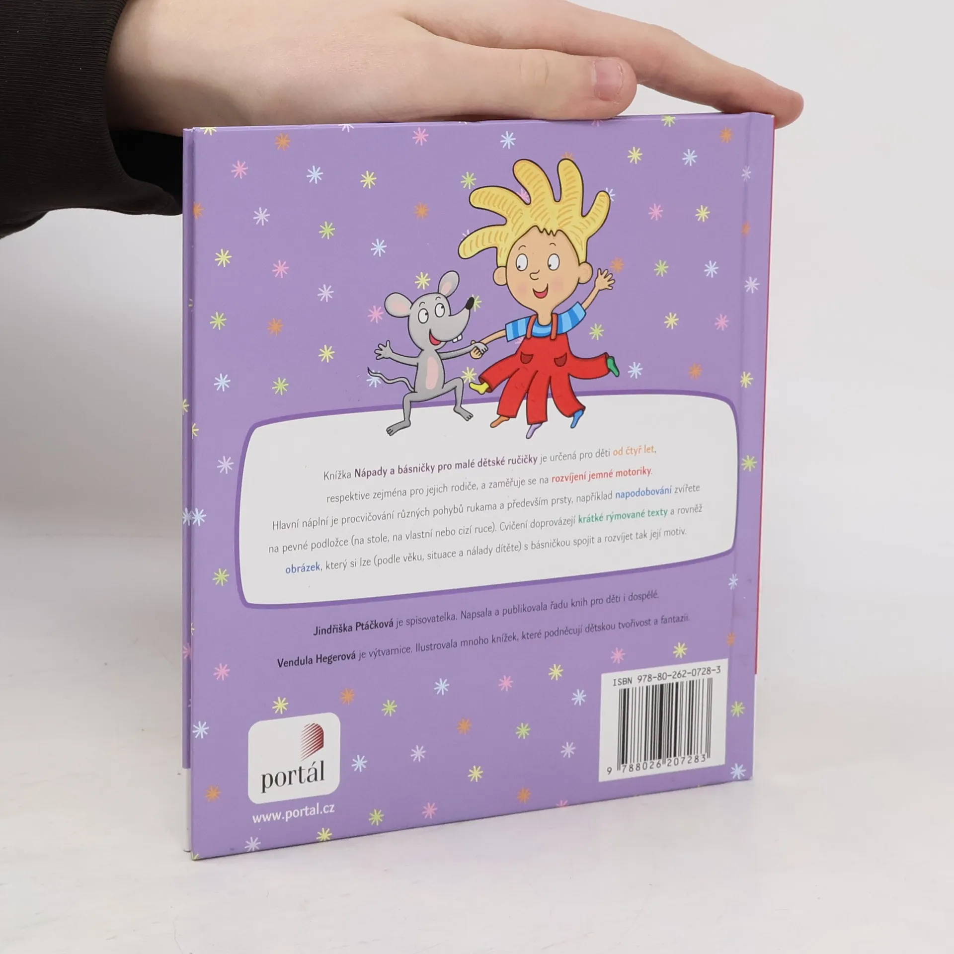 Publikace je určená pro děti od čtyř let, respektive zejména pro jejich rodiče, a zaměřuje se na rozvíjení jemné motoriky. Jedná se o procvičování různých pohybů rukama a především prsty, například napodobování zvířete na pevné podložce (na stole, na vlastní nebo cizí ruce). Cvičení doprovázejí krátké rýmované texty a rovněž obrázek, který si lze (podle věku, situace a nálady dítěte) s básničkou spojit a rozvíjet tak motiv básničky.