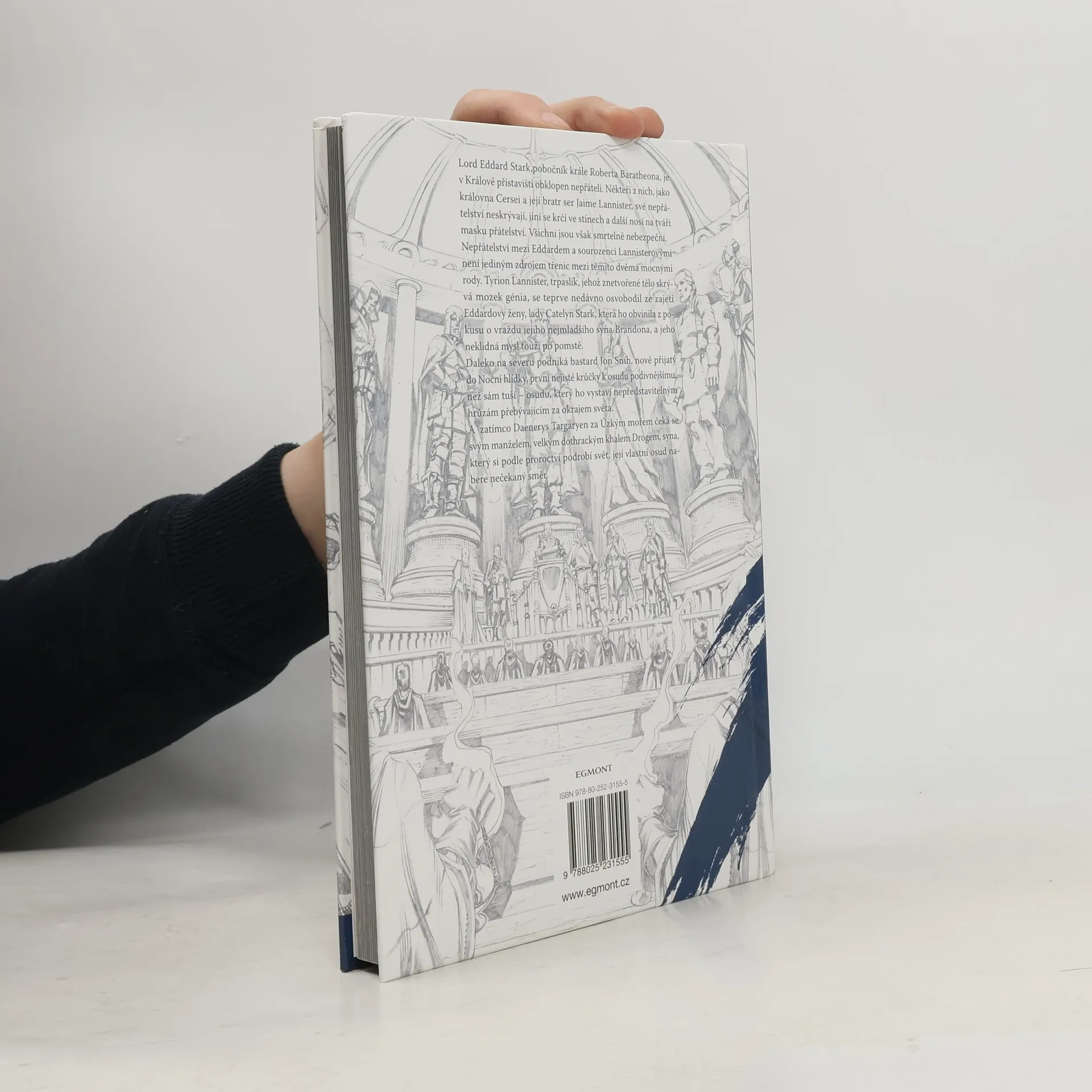 Lord Eddard Stark, pobočník krále Roberta Baratheona, je v Králově přístavišti obklopen nepřáteli. Někteří z nich, jako královna Cersei, sir Jaime Lannister a jeho sestra, své nepřátelství neskrývají, jiní se krčí ve stínech a další nosí na tváři masku přátelství. Všichni jsou však smrtelně nebezpeční. Nepřátelství mezi Eddardem a sourozenci Lannisterovými není jediným zdrojem třenic mezi těmito dvěma mocnými rody. Tyrion Lannister, trpaslík, jehož znetvořené tělo skrývá mozek génia, se teprve nedávno osvobodil ze zajetí Eddardovy ženy, lady Catelyn Stark, která ho obvinila z pokusu o vraždu jejího mladšího syna Brandona, a jeho neklidná mysl touží po pomstě. Daleko na severu podniká bastard Jon Sníh, nově přijatý do Noční hlídky, první nejisté krůčky k osudu podivnějšímu, než sám tuší – osudu, který ho vystaví nepředstavitelným hrůzám přebývajícím za okrajem světa. A zatímco Daenerys Targaryen za Úzkým mořem čeká se svým manželem, velkým dothrackým khalem Drogem, syna, který si podle proroctví podrobí svět, její vlastní osud nabere nečekaný směr.