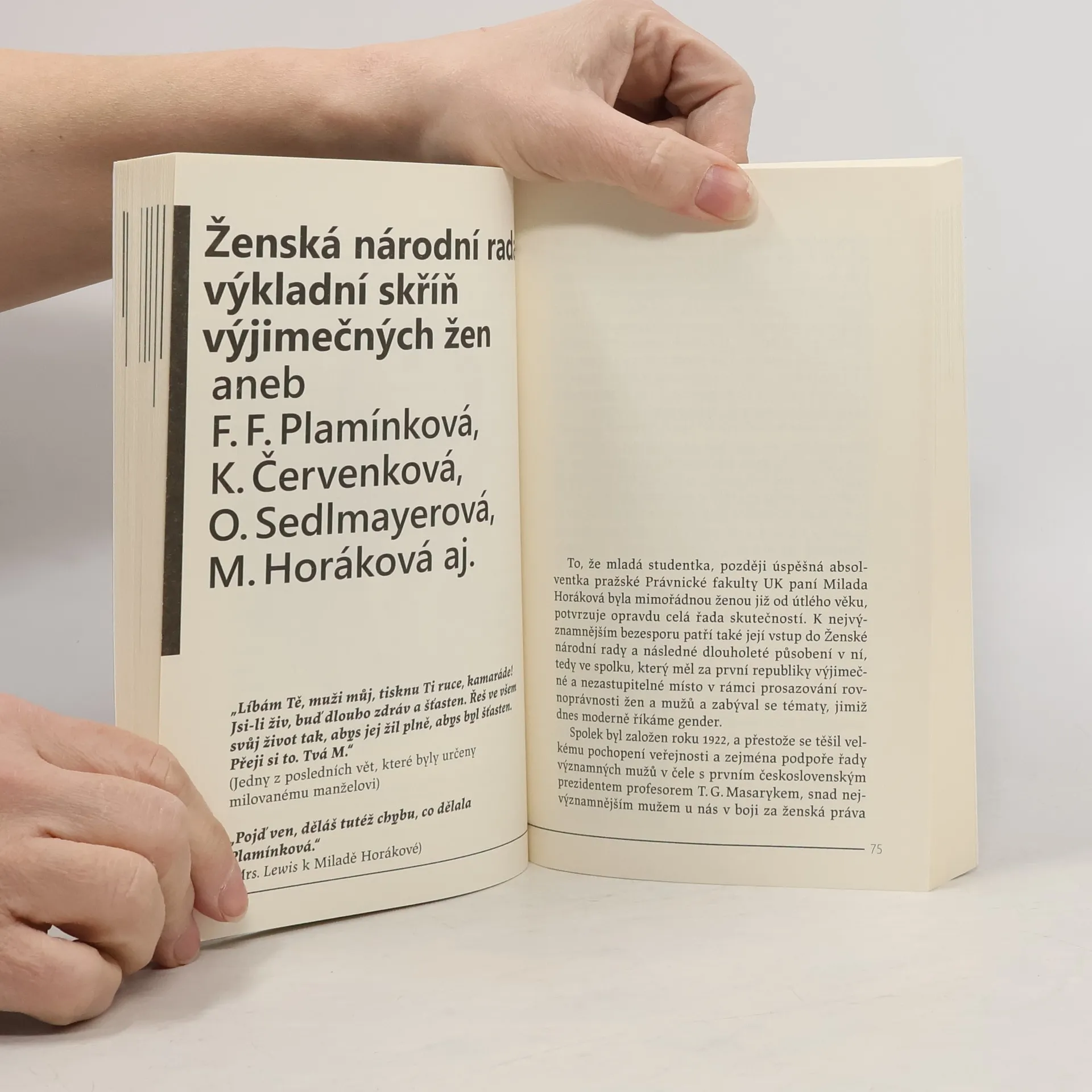 Soukromí Milady Horákové je po díle Rodokmen a soukromí TGM druhou nejvýraznější knihou historičky Michaely Košťálové týkající se velkých osobností první Československé republiky. Spisovatelka se v knize zaměřuje výhradně na soukromí a civilní život výjimečné, přemýšlivé, charismatické a citlivé ženy. Čtenář se například dozví, jak a s jakým prospěchem Milada Horáková studovala, jaké byly její záliby, jaký měla vztah k literatuře či hudbě, jaká byla její první láska, jakou byla manželkou, jak se oblékala a jaký měla vztah k módě. Součástí knihy je objasnění některých zavádějících informací ze života Milady Horákové, mezi něž náleží například fáma o její spojitosti se zbořeným mariánským sloupem na Staroměstském náměstí v Praze či spekulace, že měla být sekretářkou našeho druhého prezidenta E. Beneše. Autorka ve své knize současně odhalila i dosud velice spoře publikovaný profil Milady Horákové jako svébytné studentky Právnické fakulty Univerzity Karlovy, kde ji vyučoval například také prof. JUDr. Jan Krčmář, jehož životem a prací se autorka dlouhodobě zabývá. V knize nechybí emotivně silné momenty a úryvky z dopisů a dalších zdrojů, které statečná žena a pravá dáma, okouzlující svým nefalšovaným šarmem, učinila jen několik dní před svou smrtí.