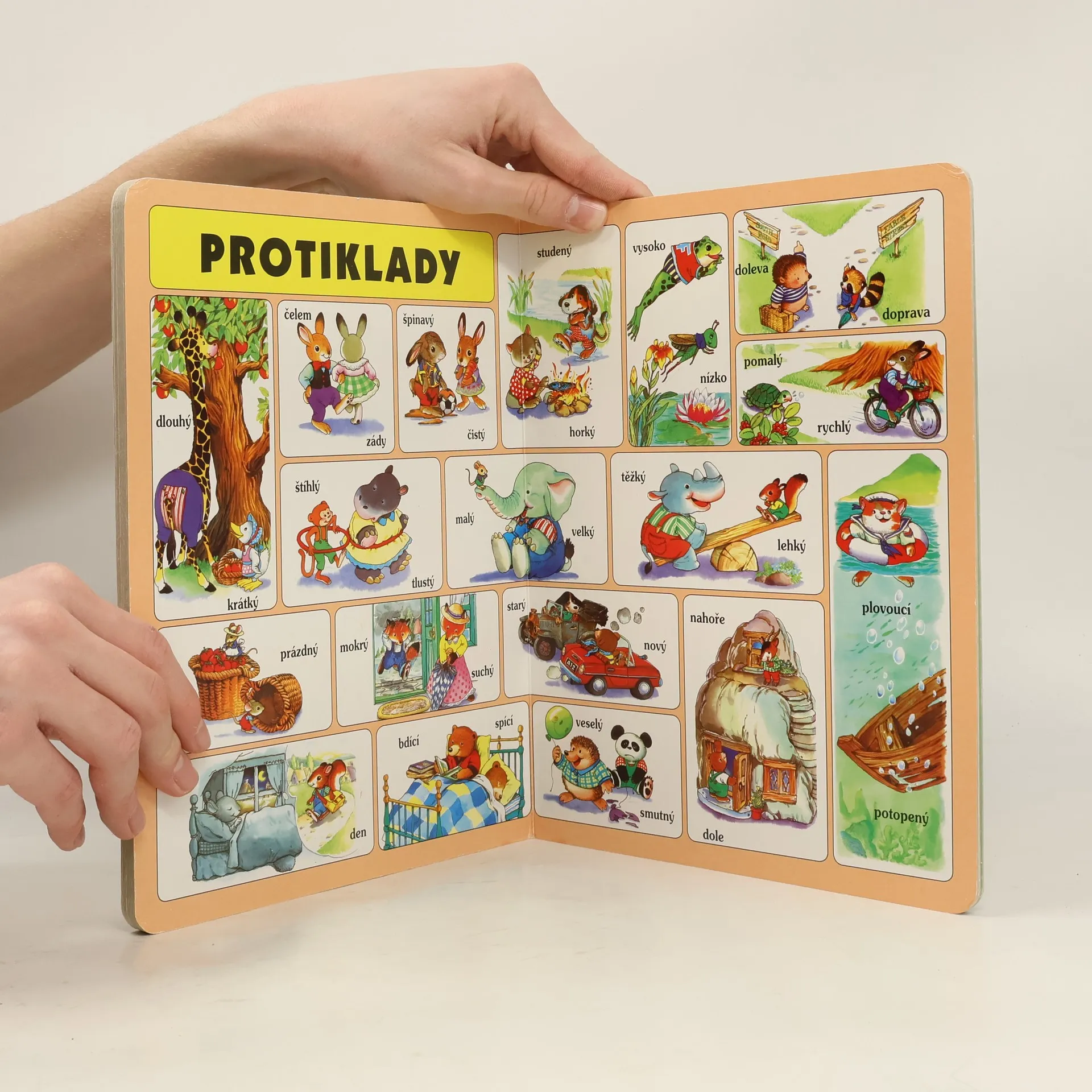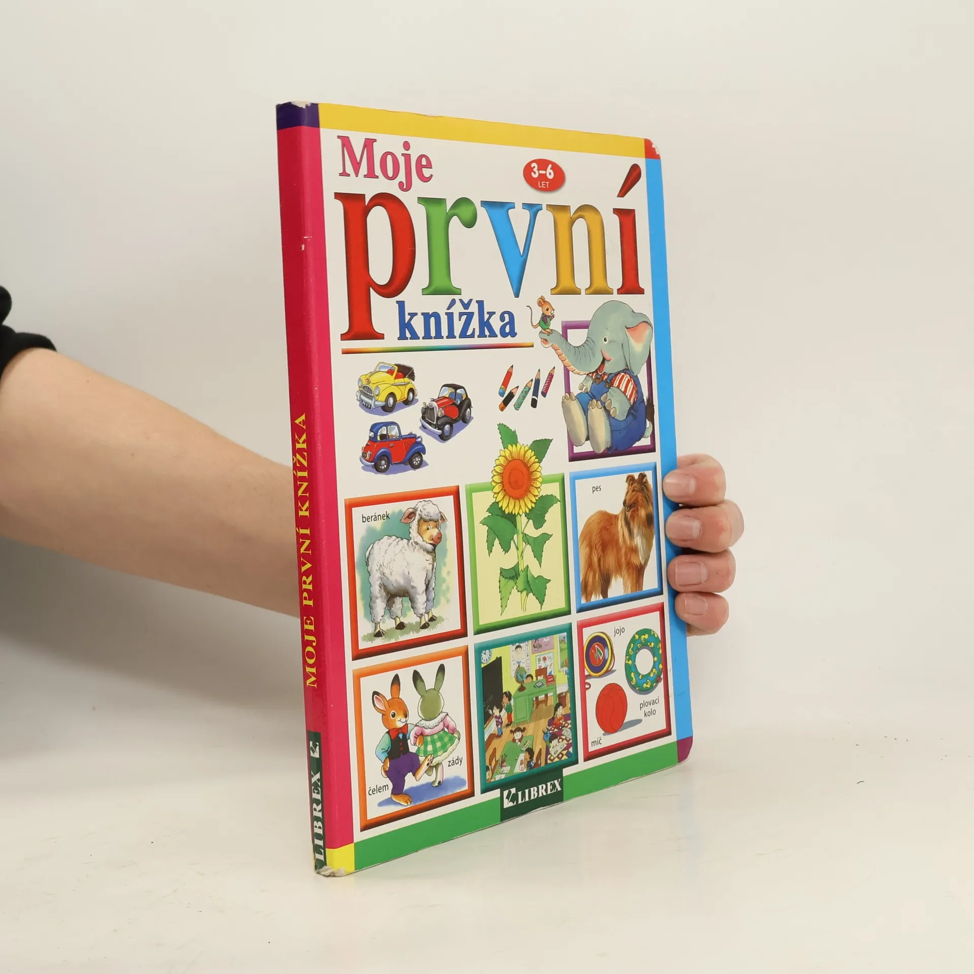 Krásná barevná obrázková knížka pro děti od 3 do 6 let. Najdou v ní domácí zvířátka, pojmenování barev, ale také abecedu s obrázky, číslice, tvary, protiklady, hodiny a povolání. Také pestré obrázky parku a školní třídy.