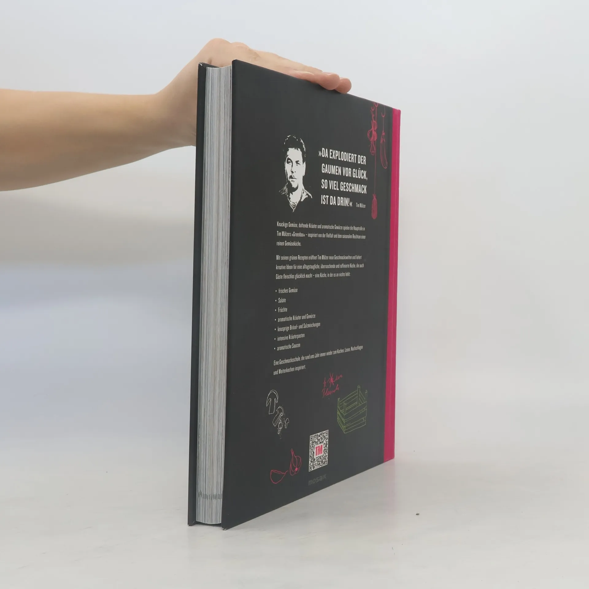 Tim Mälzer rockt die Gemüseküche! Kochen mit frischem Gemüse! Mit seinem neuen Kochbuch »Greenbox« zeigt Tim Mälzer nicht nur den überraschenden Reichtum einer fleischlosen Küche - »Greenbox« ist auch eine alltagstaugliche Geschmacksschule, die zum Kochen und Weiterkochen inspiriert. Dabei sind knackfrische Gemüse, duftende Kräuter und aromatische Gewürze die Stars. Einfache Grundrezepte ermöglichen den schnellen Zugang. Mit Anklängen an die Küchen verschiedenster Länder liefert Tim Mälzer einen Korb voller kreativer Ideen für eine raffinierte Küche, die glücklich macht. Ausstattung: 4-farbig, ca. 300 farbige Abbildungen; Pappband veredelt, 2 Lesebändchen