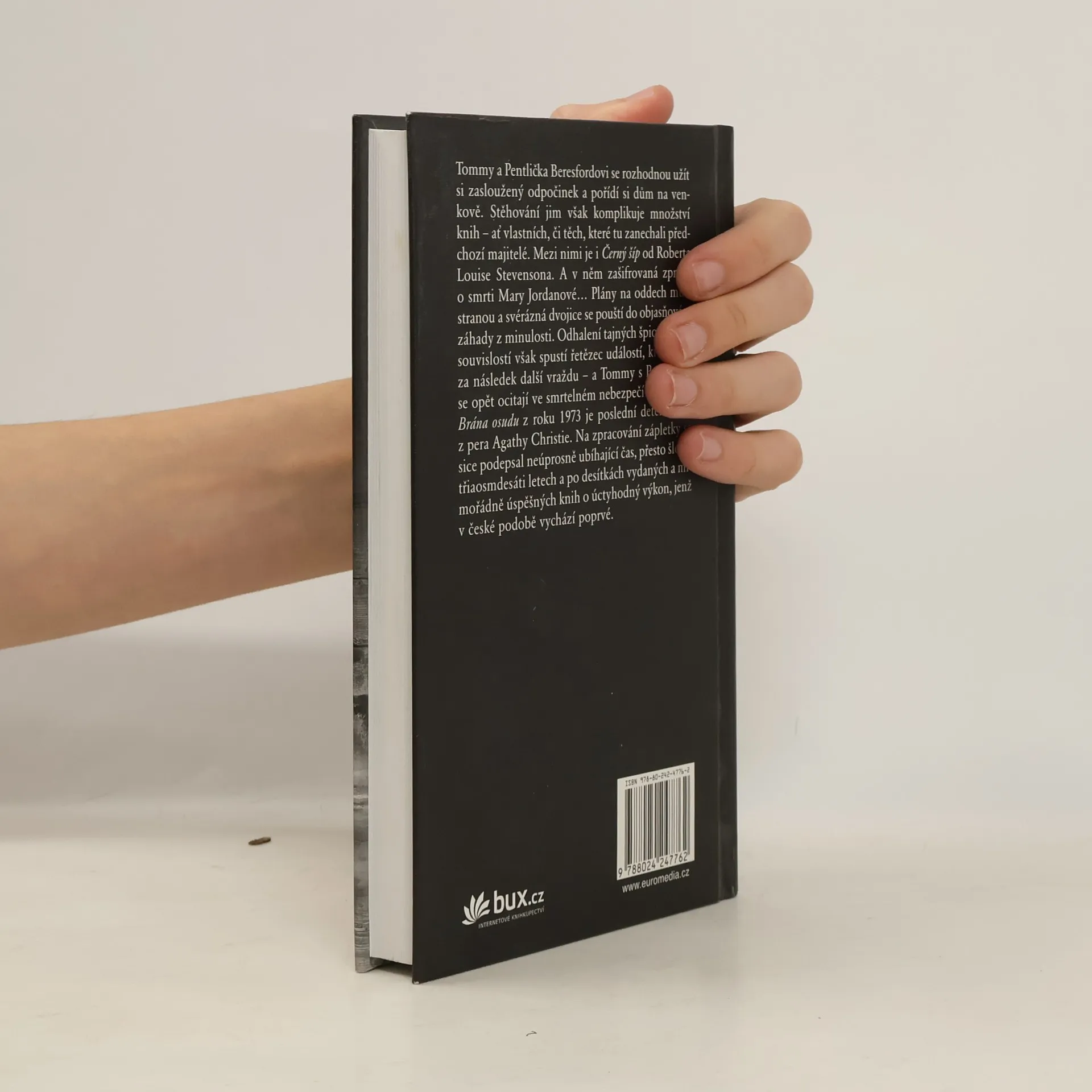 Tommy a Pentlička Beresfordovi se rozhodnou užít si zasloužený odpočinek a pořídí si dům na venkově. Stěhování jim však komplikuje množství knih – ať vlastních, či těch, které tu zanechali předchozí majitelé. Mezi nimi je i Černý šíp od Roberta Louise Stevensona. A v něm zašifrovaná zpráva o smrti Mary Jordanové… Objasňování záhady z minulosti a odhalení tajných špionážních souvislostí spustí řetězec událostí, které mají za následek další vraždu – a Tommy s Pentličkou se opět ocitají ve smrtelném nebezpečí… Brána osudu z roku 1973 je posledním románem, který Agatha Christie napsala. Na zpracování zápletky se sice podepsal neúprosně ubíhající čas, přesto šlo ve třiaosmdesáti letech a po desítkách mimořádně úspěšných titulů o výkon, jenž si zaslouží jak trochu laskavé shovívavosti, tak především úctu všech milovníků autorčiných knih.