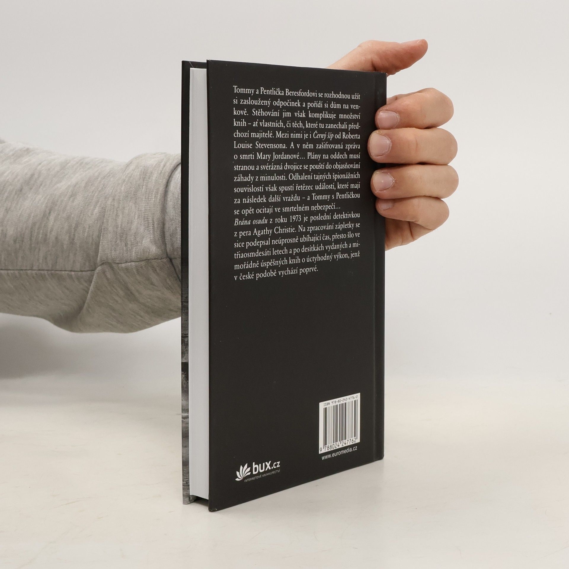 Tommy a Pentlička Beresfordovi se rozhodnou užít si zasloužený odpočinek a pořídí si dům na venkově. Stěhování jim však komplikuje množství knih – ať vlastních, či těch, které tu zanechali předchozí majitelé. Mezi nimi je i Černý šíp od Roberta Louise Stevensona. A v něm zašifrovaná zpráva o smrti Mary Jordanové… Objasňování záhady z minulosti a odhalení tajných špionážních souvislostí spustí řetězec událostí, které mají za následek další vraždu – a Tommy s Pentličkou se opět ocitají ve smrtelném nebezpečí… Brána osudu z roku 1973 je posledním románem, který Agatha Christie napsala. Na zpracování zápletky se sice podepsal neúprosně ubíhající čas, přesto šlo ve třiaosmdesáti letech a po desítkách mimořádně úspěšných titulů o výkon, jenž si zaslouží jak trochu laskavé shovívavosti, tak především úctu všech milovníků autorčiných knih.