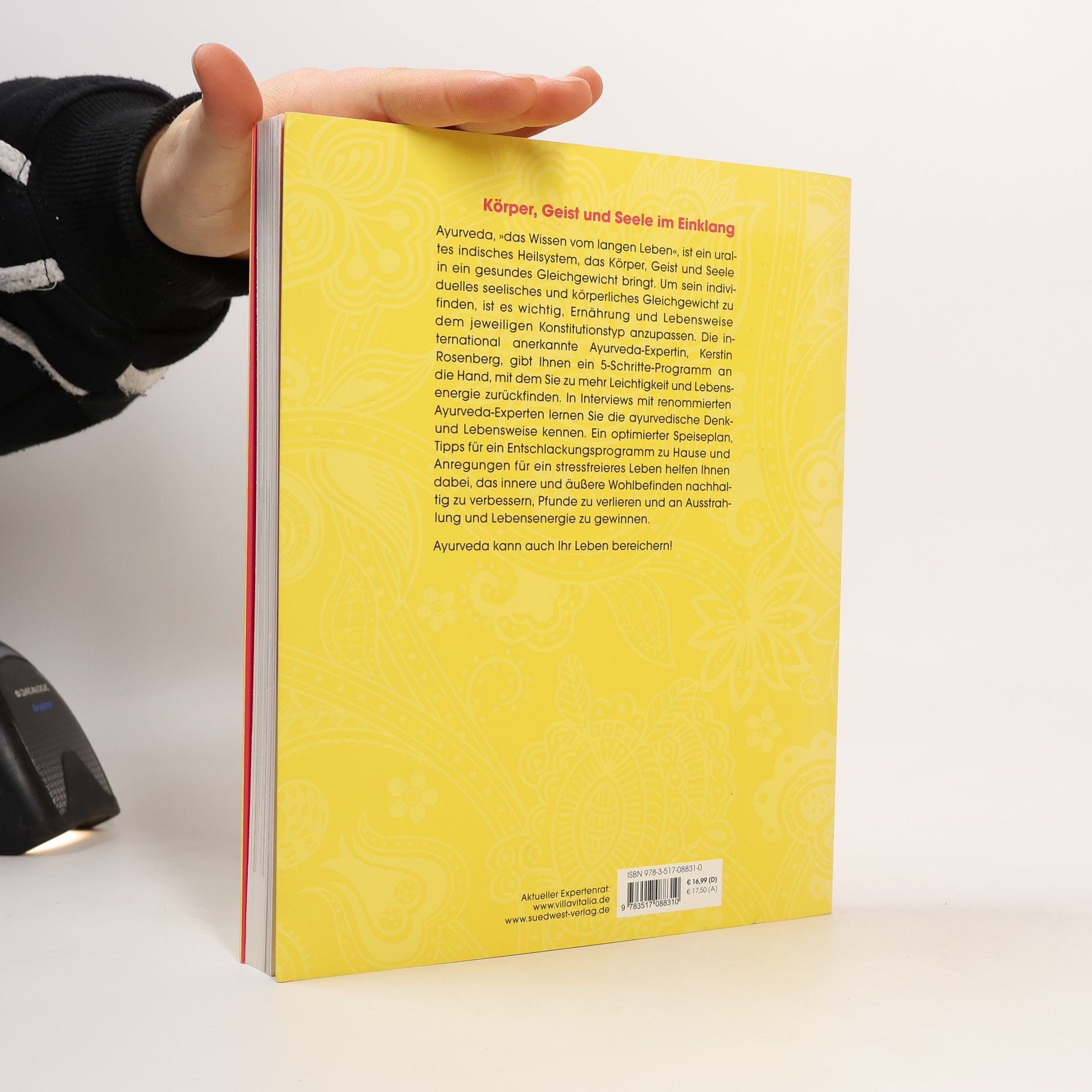 Das ayurvedische Prinzip basiert auf der Überzeugung, dass es drei unterschiedliche Konstitutionstypen gibt. Das auf den jeweiligen Konstitutionstyp abgestimmte Zusammenspiel aus Ernährung, Entspannung und Bewegung ermöglicht uns ein glückliches und gesundes Leben. Dieses praktische Arbeitsbuch enthält ein 5-Schritte-Programm für mehr Leichtigkeit und Lebensenergie durch Ayurveda. Mit diesem Programm schaffen Sie die Basis für ein glücklicheres Leben, eine erfolgreiche Gesundheitsstärkung und langfristige Gewichtsreduktion. Sie lernen die Ayurveda-Ernährungsregeln kennen und erfahren, welcher Typ Sie sind. Ein optimierter Speiseplan, Tipps für ein Entschlackungsprogramm zuhause und Anregungen für ein stressfreieres Leben helfen Ihnen dabei, das innere und äußere Wohlbefinden nachhaltig zu verbessern. Im Gespräch mit sieben renommierten Ayurveda-Experten führt Sie die Autorin in die ayurvedische Denk- und Lebensweise ein und zeigt Ihnen, wie auch Sie Ihr Leben durch Ayurveda bereichern können. Ein Ayurveda-Diät-Menüplan hilft Ihnen dabei, genussvoll und stressfrei Pfunde zu verlieren und an Ausstrahlung und Lebensenergie zu gewinnen.