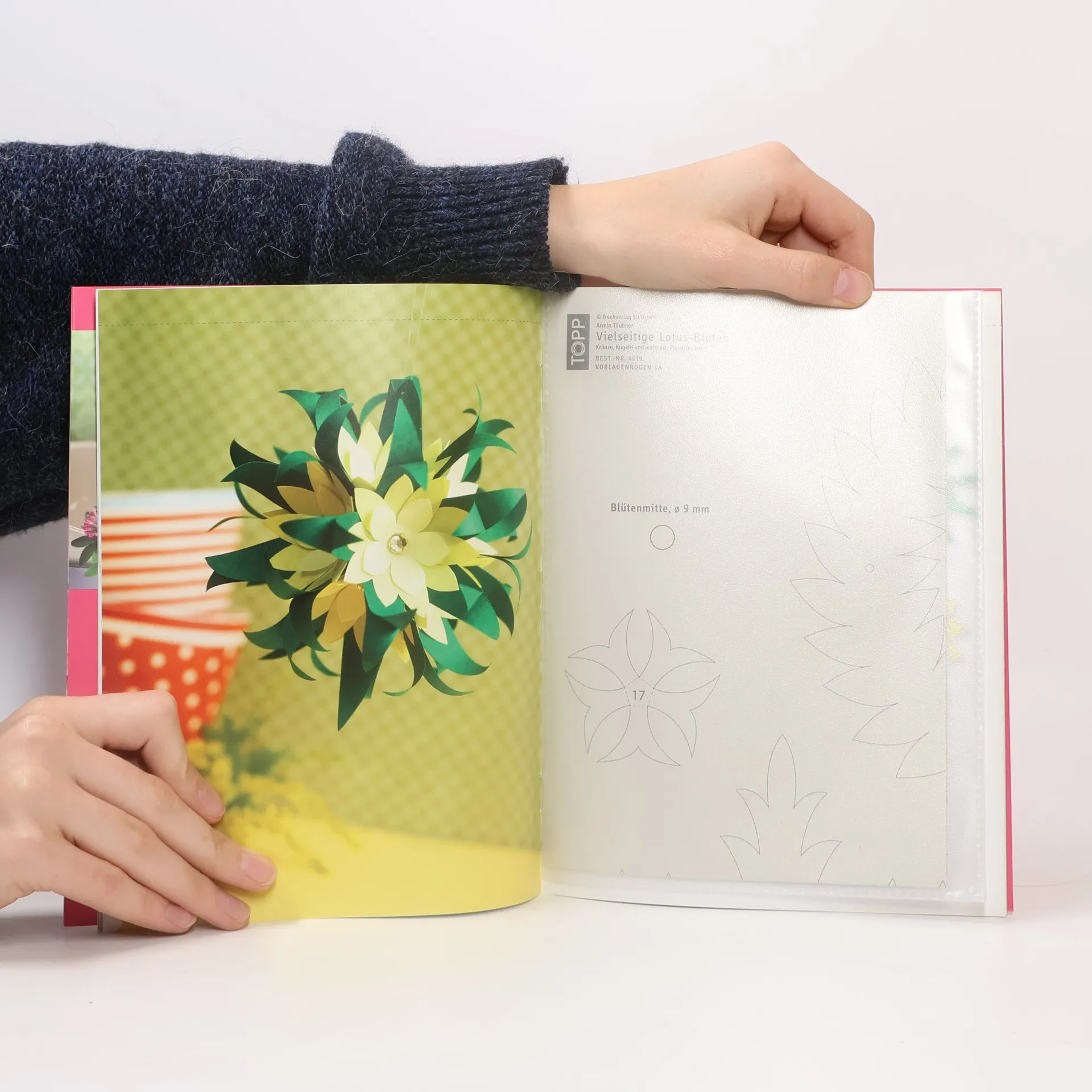 Vielseitige Lotus-Blüten. Kränze, Kugeln und mehr aus Papierblüten. Lassen Sie sich von der Vielseitigkeit zarter Blüten aus Papier verzaubern! Verschiedenen Blütenformen wunderschön miteinander kombinieren: für dekorative Kränze, Blütenkugeln, Tischschmuck und weitere hübsche Dekorationen. Mit vielen verschiedenen Vorlagen in zahlreichen Größen für einen traumhaften Blütenrausch. Passende Blütenzauber-Papiersets sind im Handel erhältlich. Kreativ-Softcover, 32 Seiten, 17 x 22 cm, Umschlagklappen, perforierte Vorlagenbogen, Einsteckhüllen.