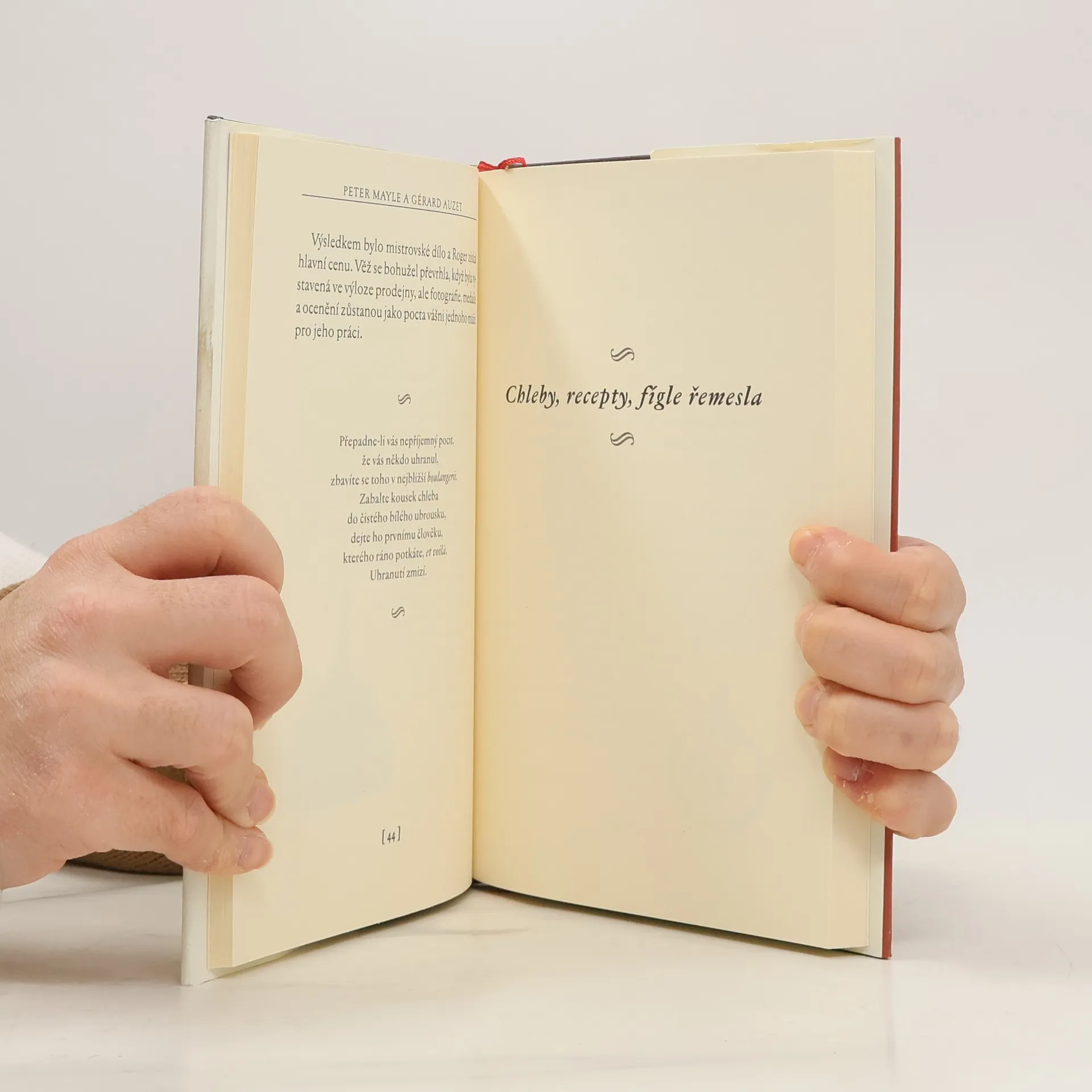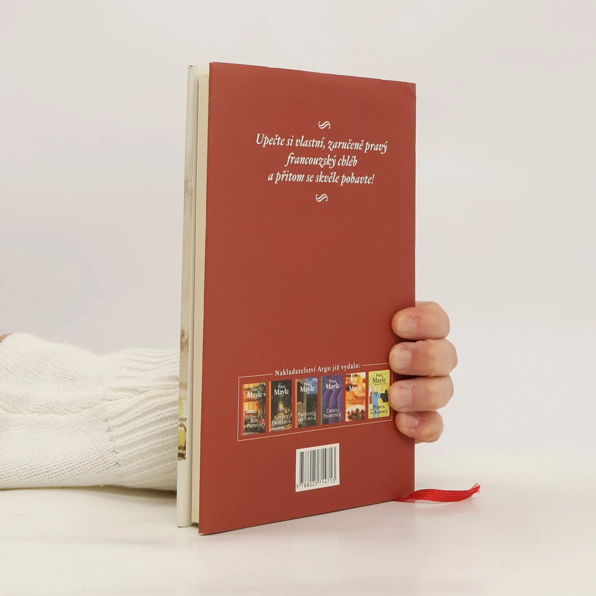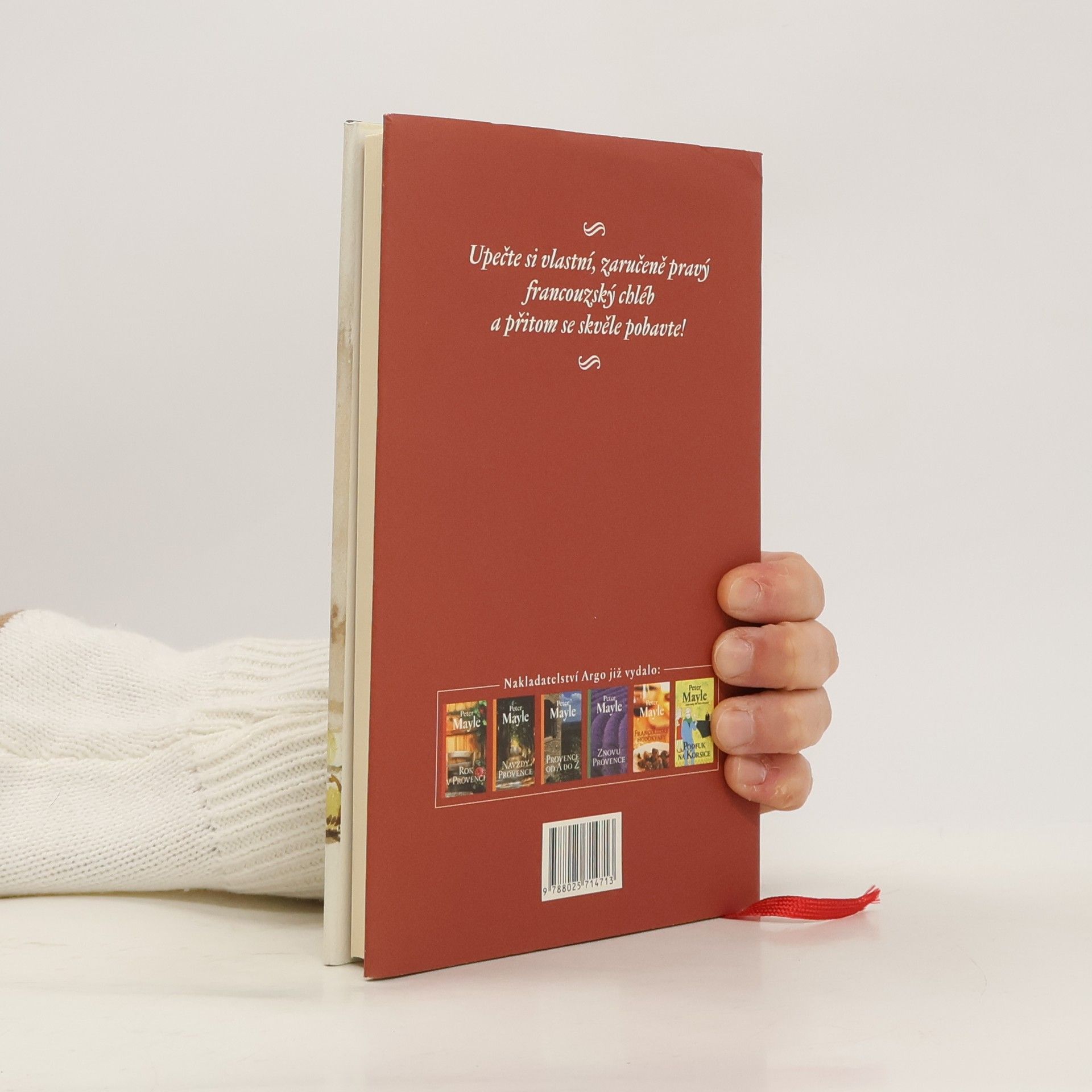 V tomto útlém svazku Peter Mayle spojil síly s Gérardem Auzetem, majitelem proslulé pekárny „Chez Auzet“ v provensálském Cavaillonu, aby nám prozradil vše o pečení chleba po francouzsku. Od přípravy a mixování těsta až po vlastní pečení, od tradičních baget a bulek až po kořeněné, olivové či vinné chleby, tento britský milovník Francie a její kuchyně nás seznamuje s jednoduchými a podrobně vysvětlenými recepty, postupy a tipy pro domácí pečení, jež doplňuje lidovými rčeními, humornými historkami a stručnou historií čtyř generací této rodinné pekárny, kde „pečení a konzumaci chleba povýšili na úroveň náboženského obřadu".