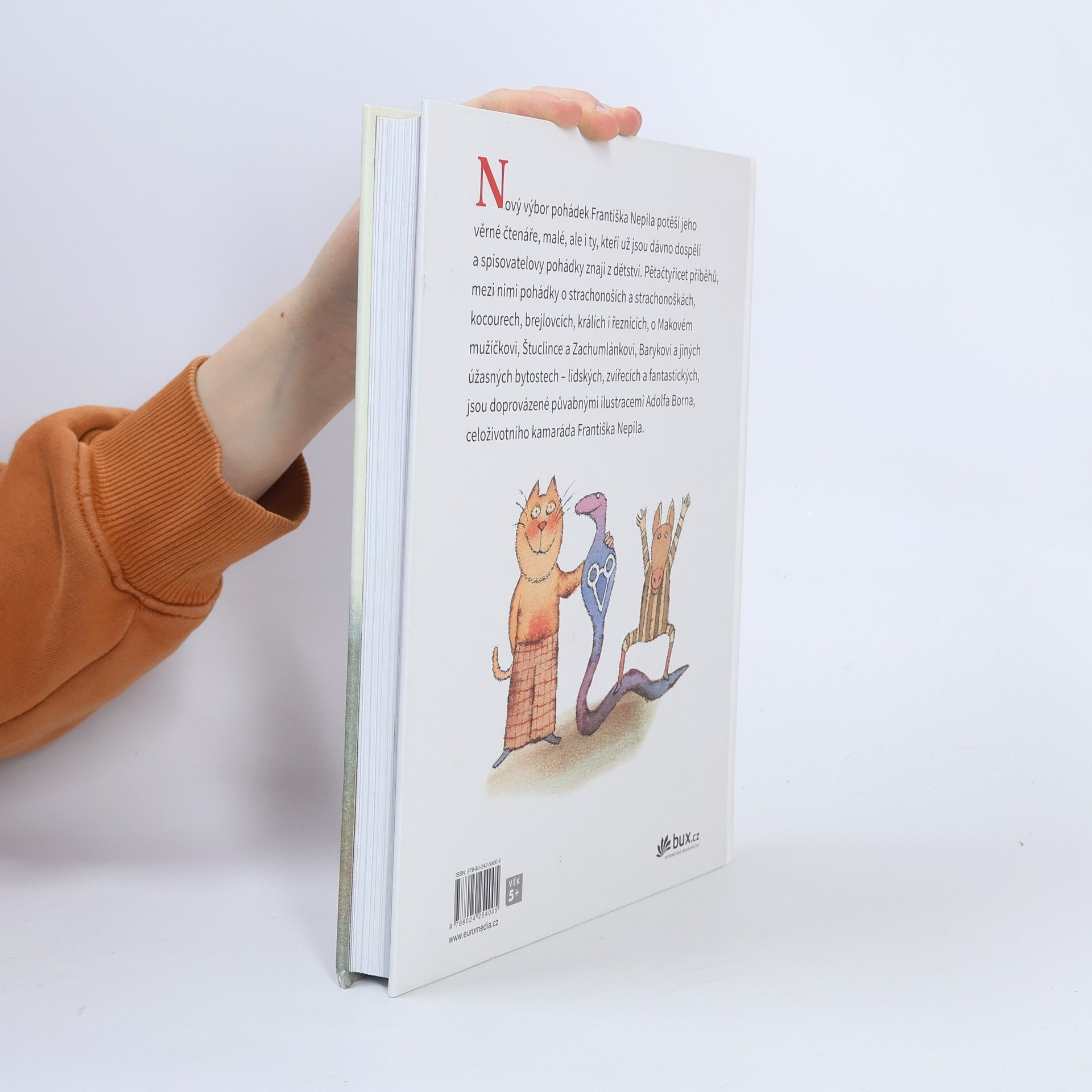 Nový výbor pohádkových příběhů Františka Nepila potěší jeho věrné čtenáře, malé, ale i ty, kteří už jsou dávno dospělí a spisovatelovy pohádky znají z dětství. František Nepil byl jedním z velkých vypravěčů minulého půlstoletí a jeho pohádky jsou zvlášť půvabné. Výbor zahrnuje pětačtyřicet příběhů, mezi nimi pohádky o strachonoších a strachonoškách, kocourech, brejlovcích, králích i řeznících, o Makovém mužíčkovi, Štuclince a Zachumlánkovi, Barykovi a jiných úžasných bytostech – lidských, zvířecích a fantastických. Knihu doprovází ilustrace letitého kamaráda a souseda Františka Nepila, Adolfa Borna.