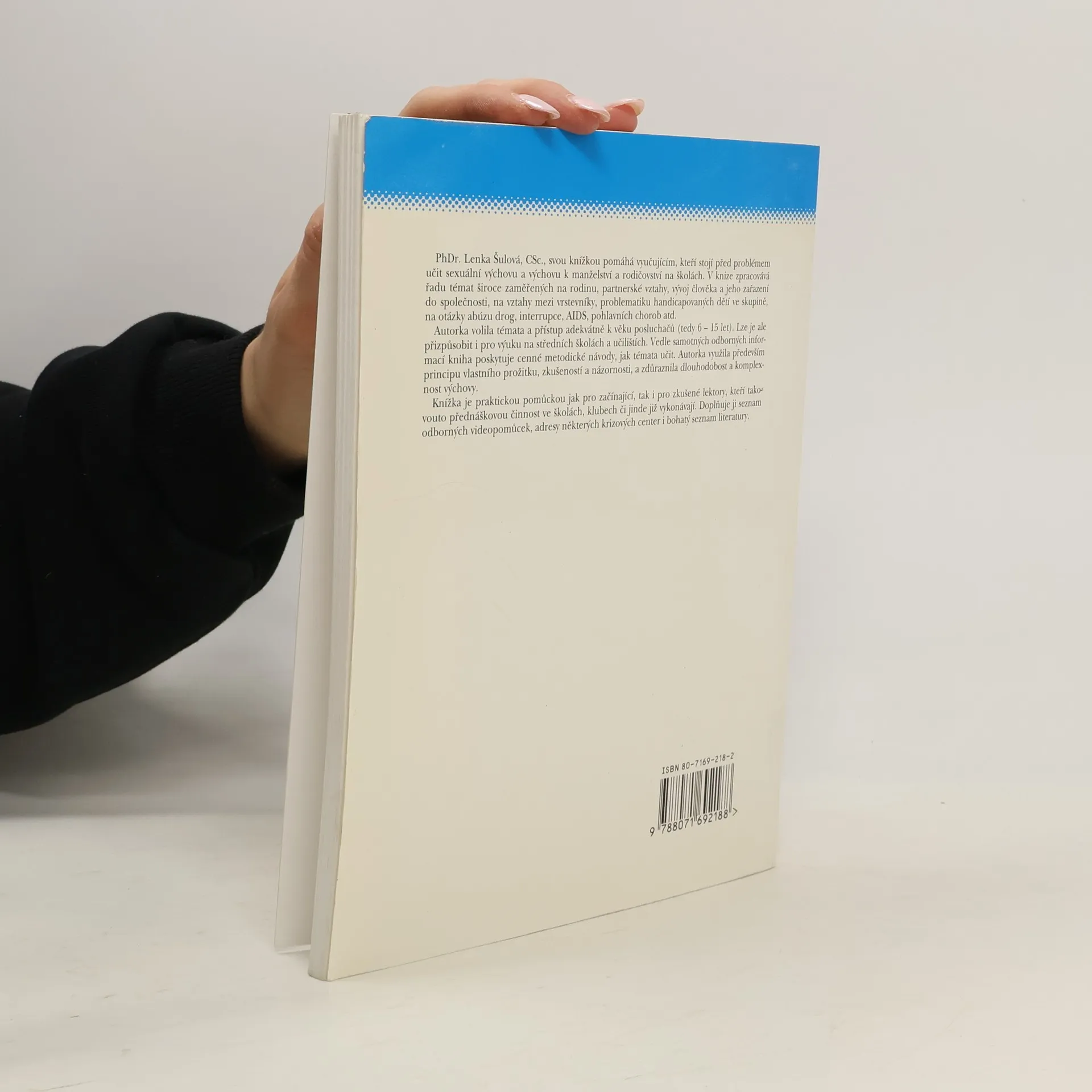 Autorka svou knížkou pomáhá vyučujícím, kteří stojí před problémem učit sexuální výchovu k manželství a rodičovství na školách. V knize zpracovává řadu témat široce zaměřených na rodinu, partnerské vztahy, vývoj člověka a jeho zařazení do společnosti, na vztahy mezi vrstevníky, problematiku handicapovaných dětí ve skupině, na otázky abúzu drog, AIDS, pohlavních chorob atd. Autorka volila témata a přístup adekvátně věku posluchačů (tedy 6 – 15 let). Lze je ale přizpůsobit i pro výuku na středních školách a učilištích. Vedle samotných odborných informací kniha poskytuje cenné metodické návody, jak témata učit. Autorka využila především principu vlastního prožitku, zkušeností a názornosti, a zdůraznila dlouhodobost a komplexnost výchovy. Publikaci doplňuje seznam odborných videopomůcek i bohatý seznam literatury. Využití publikace: pro začínající i zkušené lektory, kteří takovouto výchovně-vzdělávací činnost ve školách, klubech či jinde vykonávají, pro pedagogické pracovníky základních i středních škol, pro pedagogické pracovníky, kteří pracují s dětmi školního věku (dětské domovy aj.).