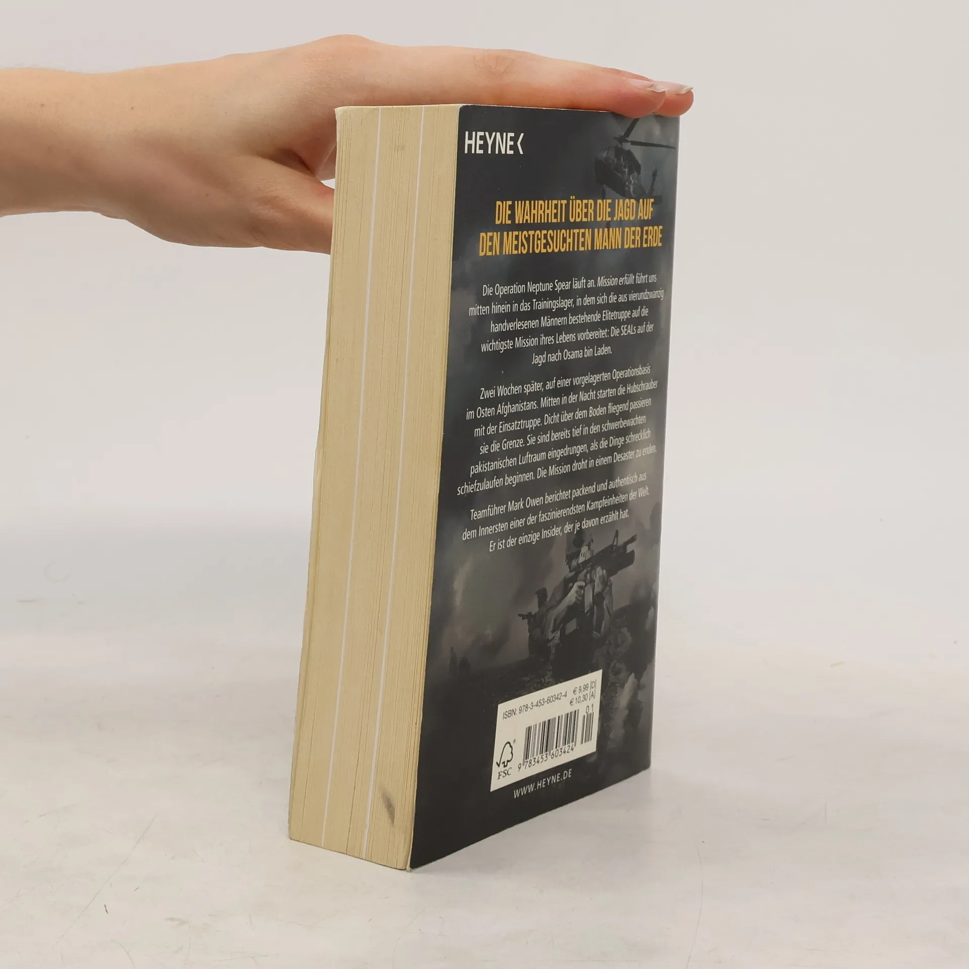 Operation Neptune Spear – wie Osama Bin Laden tatsächlich zu Tode kam Pakistan, Abottabad, 1. Mai 2011: Mark Owen ist Teamführer des Teams 6 der Navy SEALs. Ihre Mission: das Aufspüren und Ausschalten des weltweit am meisten gefürchteten und gesuchten Mannes, Osama Bin Laden. Zehn Jahre nachdem die Türme des World Trade Center in Flammen aufgingen und die Welt in Angst und Schrecken erstarrte, ereilt den Terroristenführer das Schicksal: Als einer der Ersten tritt Owen durch die Tür im zweiten Stock von Bin Ladens Versteck und wird Zeuge, wie er stirbt … Hautnah, spannungsgeladen, atemlos: die Wahrheit über eine der bestgehüteten Geheimoperationen der Welt.