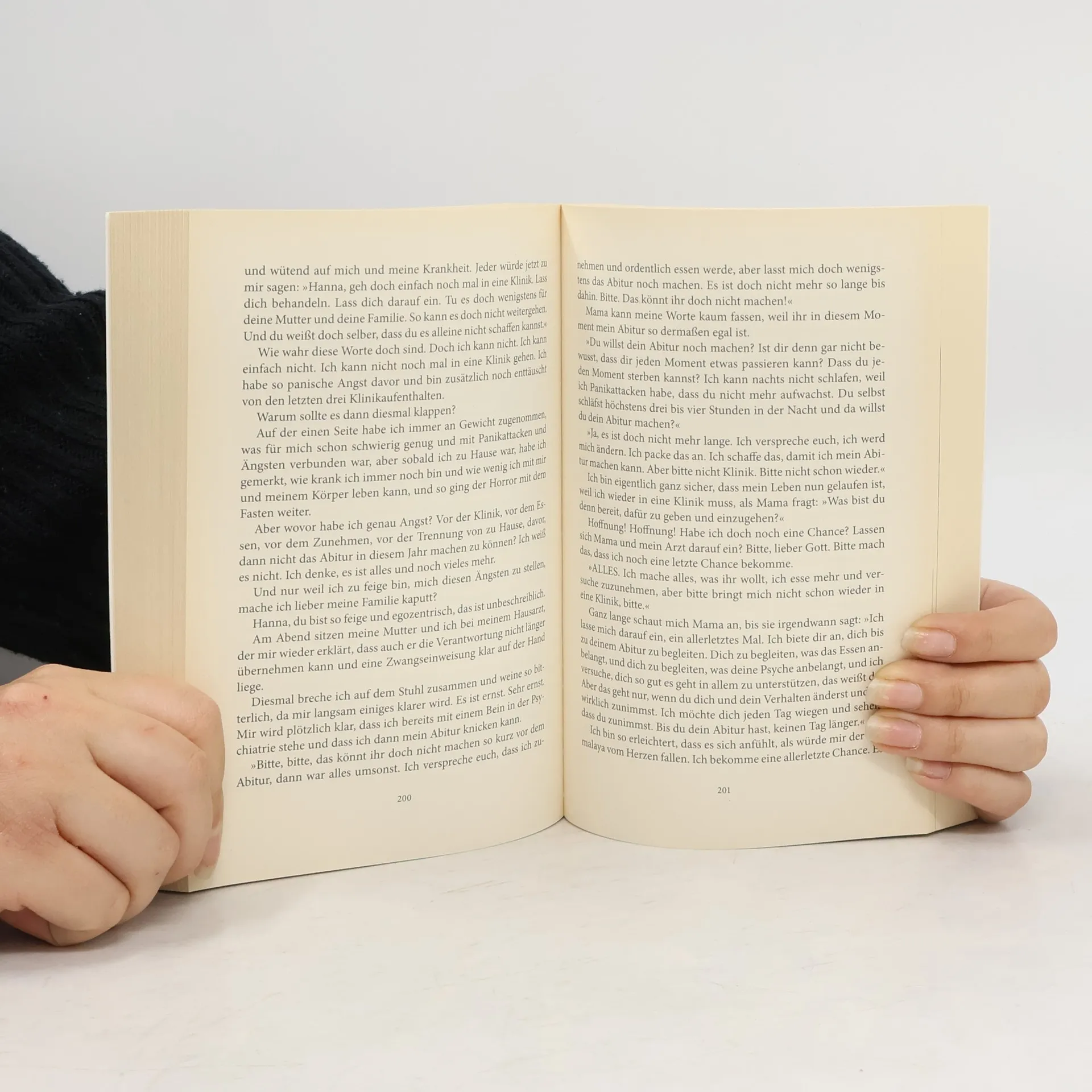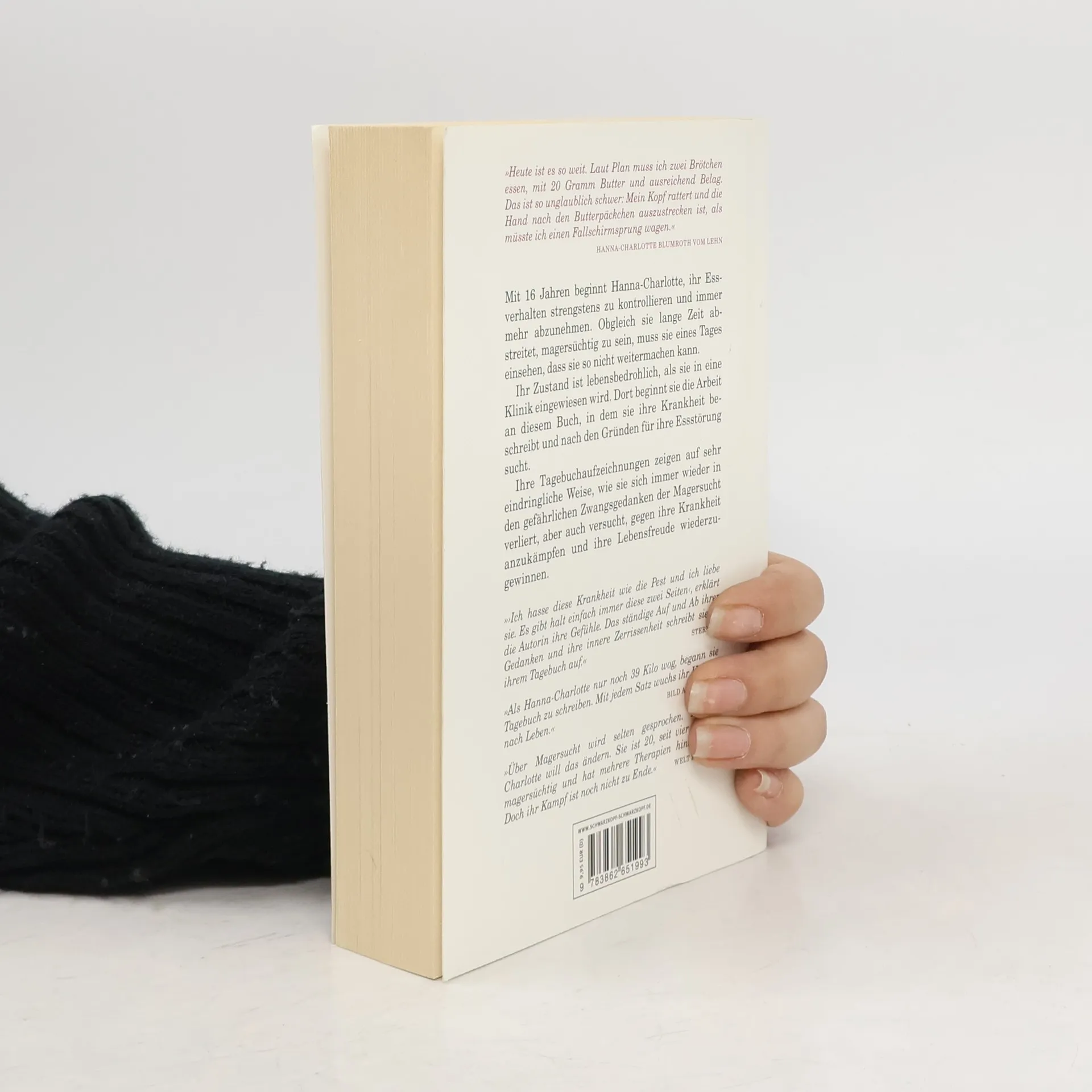 Mit 16 Jahren erkrankt Hanna-Charlotte Blumroth vom Lehn an Magersucht. Ihre Gedanken kreisen fortan nur noch darum, wie sie Essen vermeiden und ihre Gewichtsabnahme beschleuni- gen kann. Sie zieht sich immer mehr in sich zurück und ihre Familie und Freunde reagieren hilf- los und voller Sorge auf Hannas körperliche und seelische Veränderungen. Als ihr Untergewicht lebensbedrohlich wird, wird sie von ihrer Mutter in eine Klinik gebracht – der erste von vier stati- onären Aufenthalten und der Beginn eines langen Leidensweges. Die Tagebuchaufzeichnungen von Hanna-Charlotte Blumroth vom Lehn sind die schmerzhae Auseinandersetzung mit ihrer Krankheit und ihr Versuch, sie zu verstehen. In ihnen zeigen sich immer wieder die zwei Seiten ihrer Persönlichkeit, die kranke Seite, die sie zum zerstörerischen Hungern antreibt, und die gesunde Seite, die immer wieder an ihren Lebenswillen appelliert.