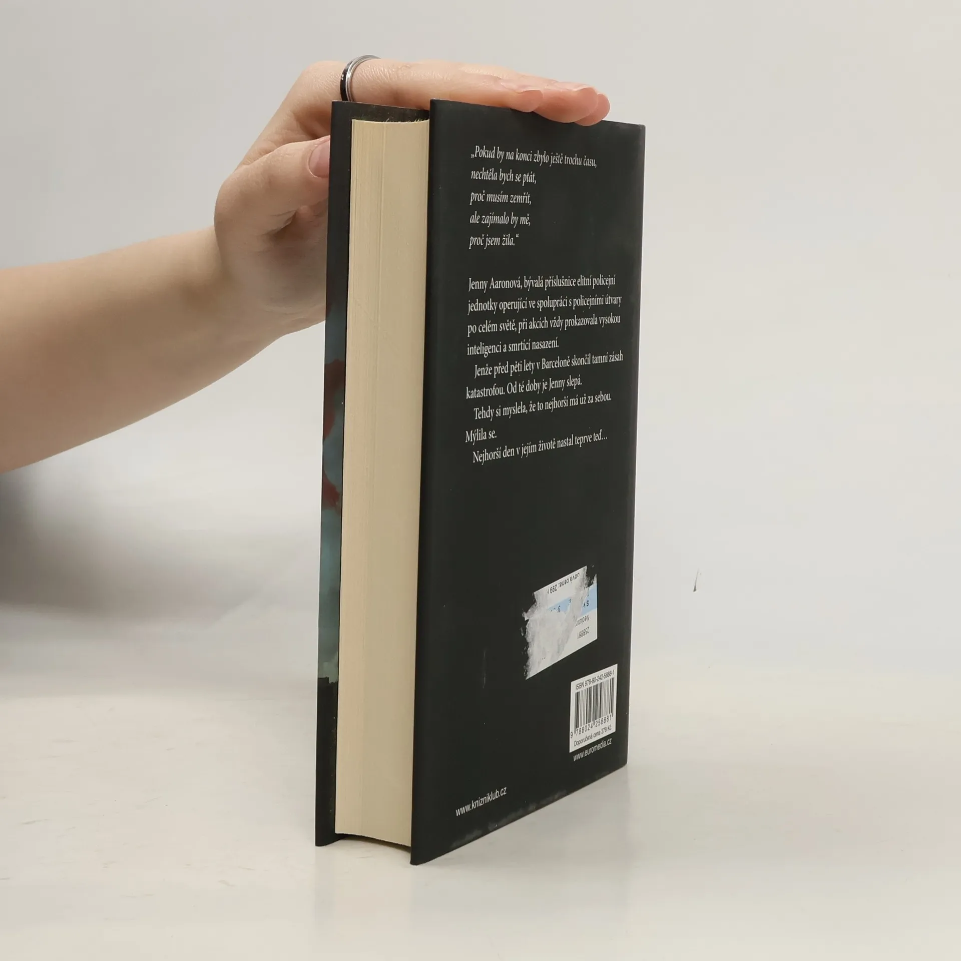 Jenny Aaronová, bývalá příslušnice elitní policejní jednotky, operující ve spolupráci s policejními útvary po celém světě, při akcích prokazovala vysokou inteligenci a smrtící nasazení. Jenže před pěti lety v Barceloně skončil tamní zásah katastrofou. Od té doby je Jenny slepá. Tehdy si myslela, že to nejhorší má už za sebou. Mýlila se. Nejhorší den v jejím životě nastal teprve teď…