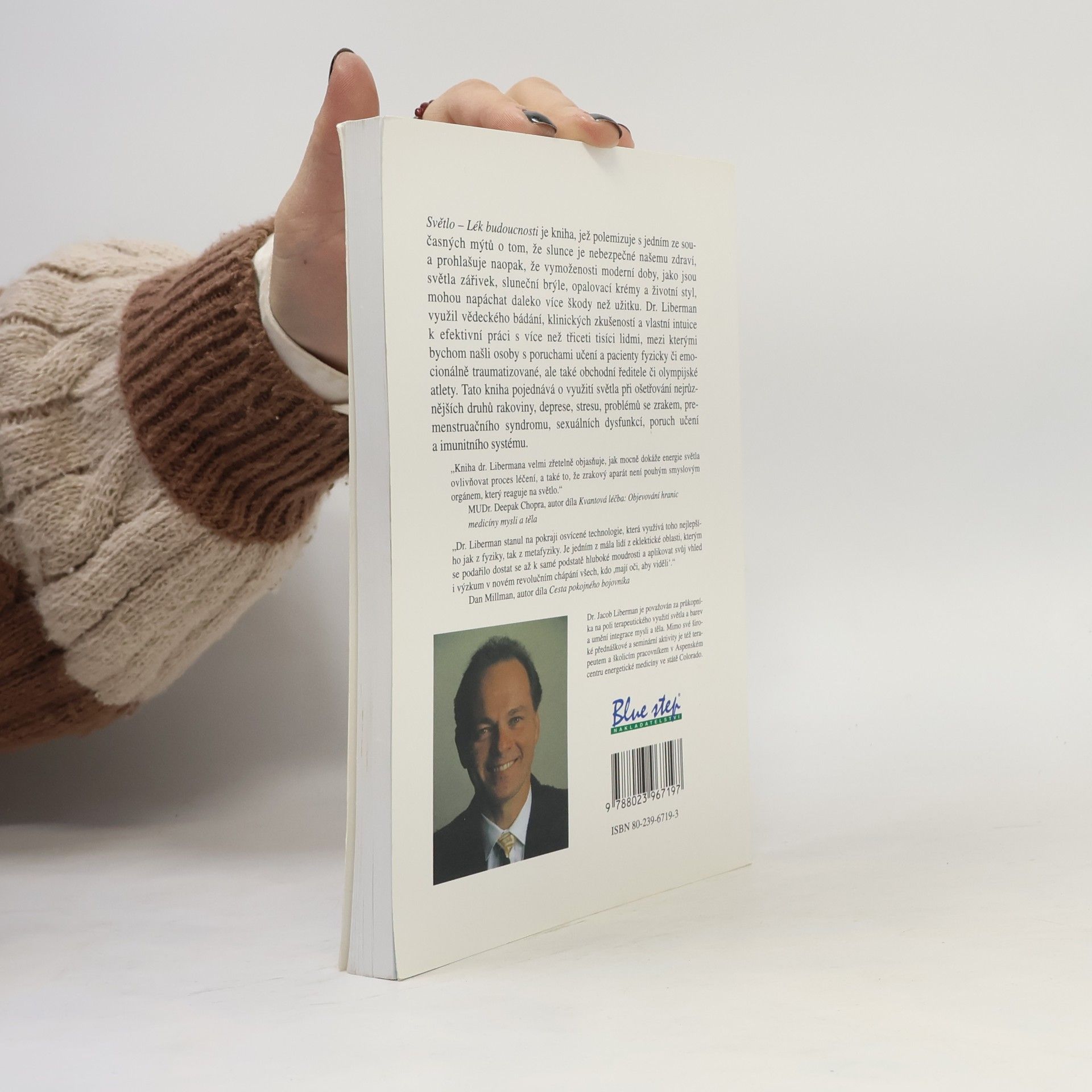 Dr. Jacob Liberman je průkopníkem terapeutického využití světla a barev a integrace mysli a těla. Kromě přednášek a seminářů působí jako terapeut v Aspenském centru energetické medicíny v Coloradu. Kniha zpochybňuje mýtus o nebezpečnosti slunce pro zdraví a tvrdí, že moderní vymoženosti, jako jsou zářivky, sluneční brýle a opalovací krémy, mohou být škodlivější než prospěšné. Dr. Liberman čerpal z vědeckého bádání, klinických zkušeností a intuice při práci s více než třiceti tisíci lidmi, včetně pacientů s poruchami učení, traumatizovaných jedinců, obchodních ředitelů a olympijských atletů. Kniha se zaměřuje na využití světla při léčbě různých onemocnění, včetně rakoviny, deprese, stresu, problémů se zrakem, premenstruačního syndromu, sexuálních dysfunkcí a poruch imunitního systému. MUDr. Deepak Chopra poznamenává, že kniha jasně ukazuje moc energie světla v procesu léčení a zdůrazňuje, že zrakový aparát není pouze smyslovým orgánem. Dan Millman dodává, že Dr. Liberman využívá osvícenou technologii, která spojuje fyziku a metafyziku, a jeho práce přináší revoluční chápání pro všechny, kdo mají oči, aby "viděli."