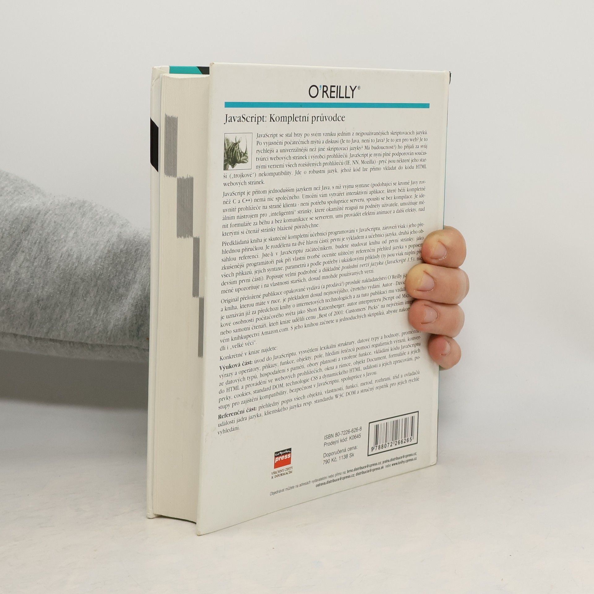 Díky plné podpoře JavaScriptu v nových verzích prohlížečů (Internet Explorer 6, Netscape 6 či Mozilla) slaví tento skriptovací jazyk své znovuzrození. Kniha proslulého nakladatelství O’Reilly je jeho „biblí“, nepostradatelnou oporou programátorů v JavaScriptu všech úrovní. Nové, aktualizované vydání naučí tvůrce stránek v HTML, jak pomocí JavaScript vytvářet dynamické webové stránky. Zkušení programátoři v něm kdykoli rychle najdou podrobné informace k programování náročných funkcí svých aplikací. Vše je dokumentováno na příkladech využití při obvyklých úlohách, jako ověřování formulářových dat, práci s cookies, vytvářením animací v DHTML apod. Referenční část obsahuje detailní popisy základního API JavaScriptu, starého API klienta a standard DOM API podle W3C. Dokumentován je každý objekt, metoda, vlastnost, konstruktor, konstanta, funkce či obsluha události JavaScriptu.