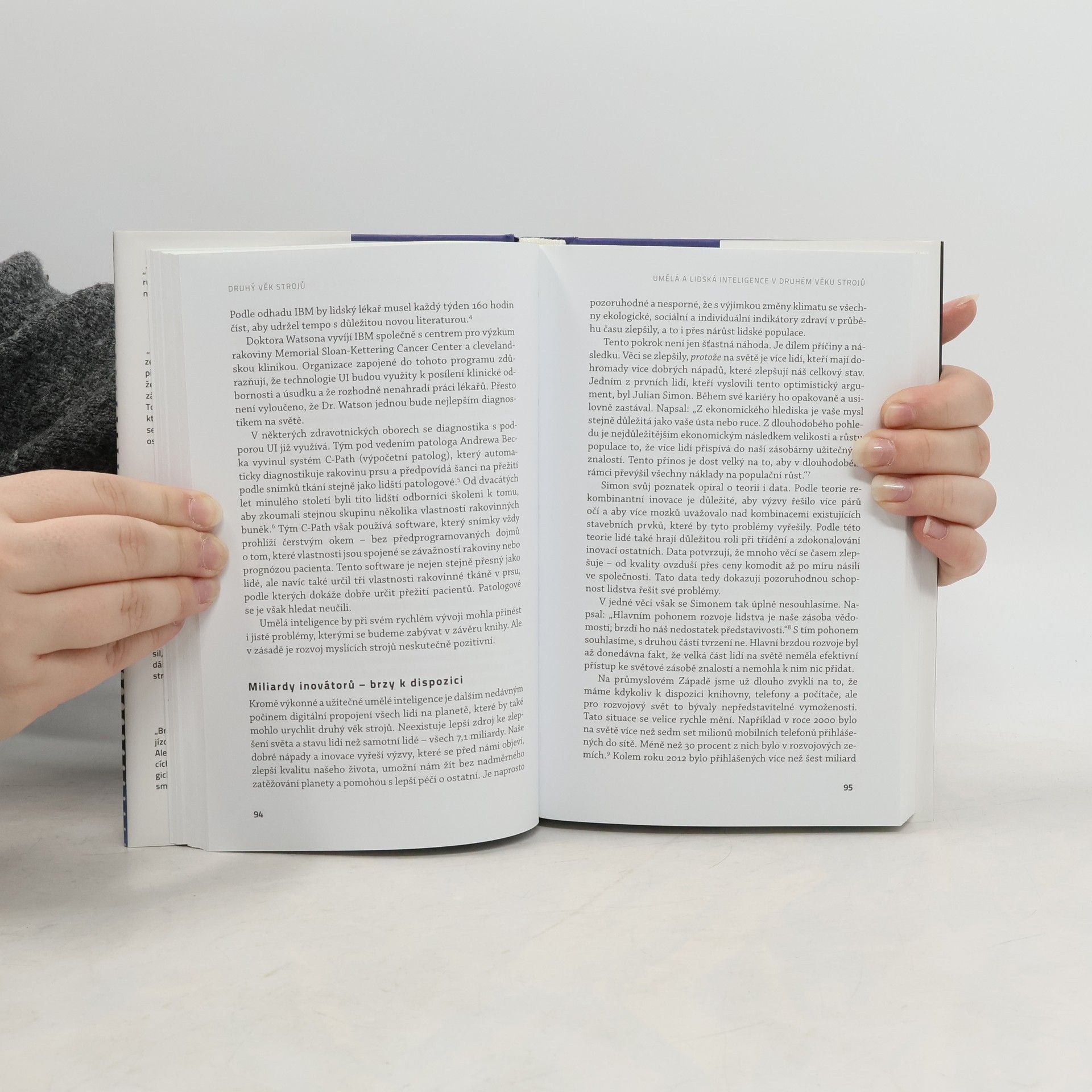 Chcete uspět v závodě s umělou inteligencí? Chcete vědět, co mají studovat vaše děti, aby v budoucnu našly práci? Vstoupili jsme do zcela nové doby. Počítače porážejí člověka v logických hrách, dokáží diagnostikovat onemocnění přesněji než lékaři, obrovské databázové systémy řídí obchod a vůbec: digitální technologie zvládají čím dál tím častěji úkony donedávna vyhrazené pouze lidem. Díky nim rostou zisky a zvyšuje se produktivita, ale také narůstá nezaměstnanost a klesají reálné mzdy mnoha profesí. Jak bude vypadat naše budoucnost za deset let? A co vlastně čekat od inteligentních strojů a jak se na ně připravit? Bestseller Druhý věk strojů Erika Brynjolfssona a Andrewa McAfeeho z MIT nabízí klíčové poznatky o masivních změnách, které díky digitálním technologiím a inovacím podstupuje ekonomika a celý náš svět. Publikace detailně argumentuje a předkládá možná východiska budoucího soužití s našimi digitálními výtvory – protože právě to bude definovat úspěch naší civilizace v jedenadvacátém století. Podle autorů existují rizika, ale také cesty, jak zajistit, aby každý člověk na planetě zůstal ekonomicky životaschopný. Čtivý, zasvěcený, spíše optimistický a v USA velice diskutovaný výhled do budoucnosti prezentovaný v této publikaci by měl patřit k povinné četbě všech lidí, kterým není lhostejný svět, v němž žijeme.