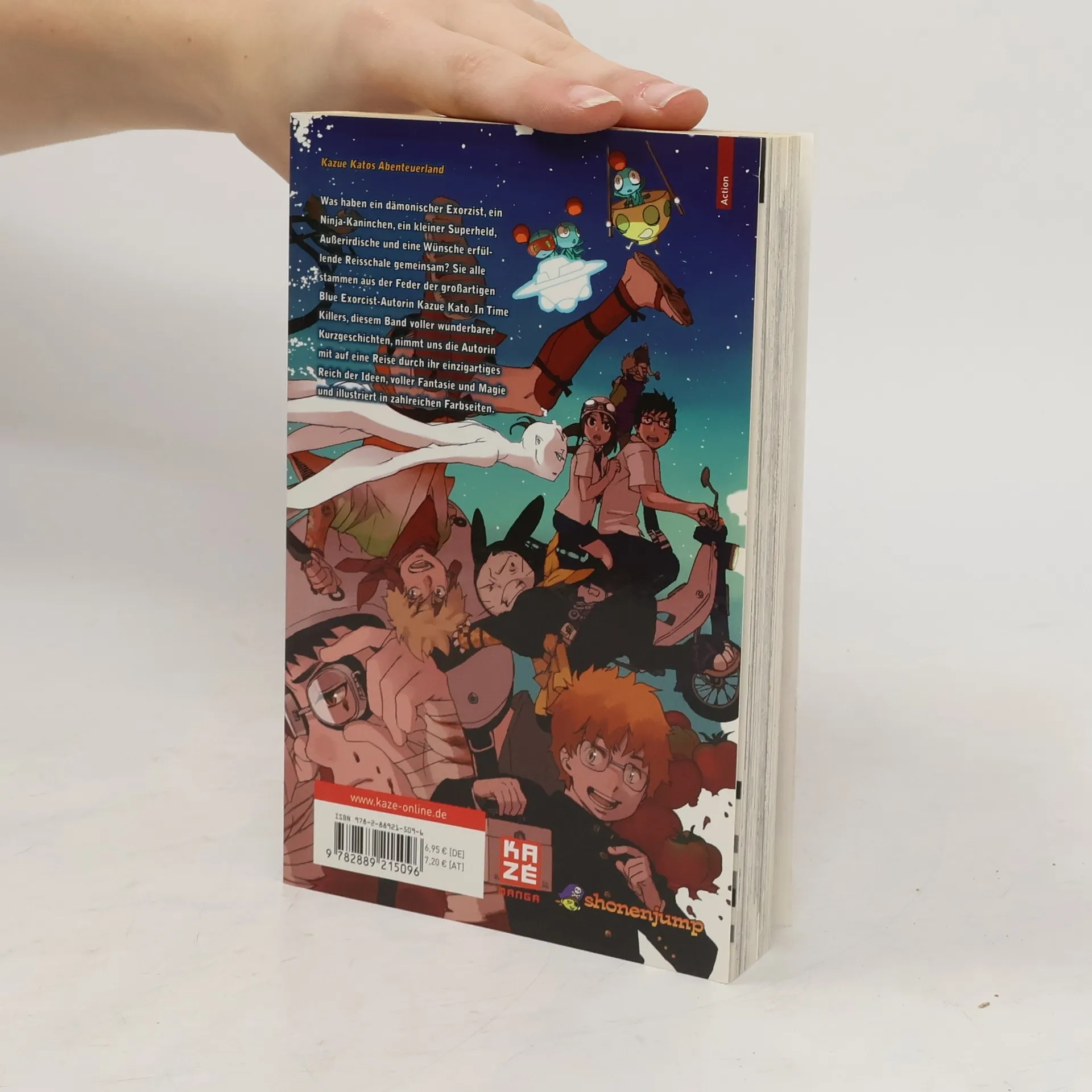 Was haben ein dämonischer Exorzist, ein Ninja-Kaninchen, ein kleiner Superheld, ein Außerirdischer und eine Wünsche erfüllende Reisschale gemeinsam? Sie alle stammen aus der Feder der großartigen Blue Exorcist-Autorin Kazue Kato. In Time Killers, diesem Band voller wunderbarer Kurzgeschichten, nimmt uns die Autorin mit auf eine Reise durch ihr einzigartiges Reich der Ideen, voller Fantasie und Magie und illustriert in zahlreichen Farbseiten. Time Killers ist mehr als nur ein Zeitvertreib. 11 Kurzgeschichten, u.a. die Vorgeschichte unseres aktuellen Bestsellers Blue Exorcist, laden zum Träumen und Staunen ein.