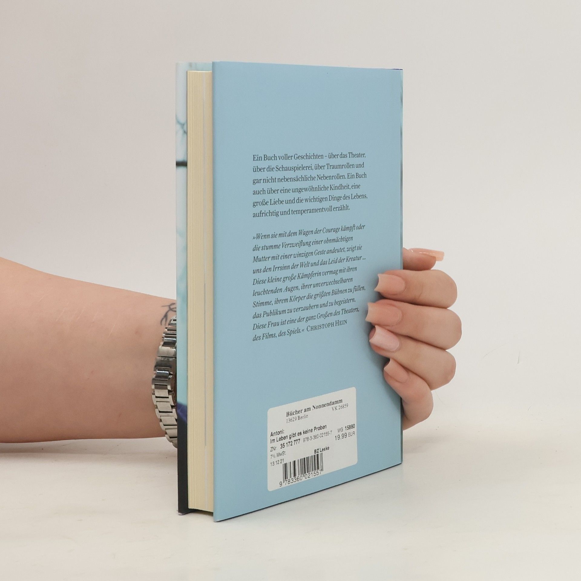 Blonder Strubbelkopf, aus den Augen blickt der Schalk, Lebensspuren im hellwachen, klugen Gesicht. Von dieser Frau lässt man sich gern etwas erzählen über das Leben und über die Kunst, der sie sich mit Haut und Haar verschrieben hat. Als Elfjährige wurde sie fürs Fernsehen entdeckt, trat in der Kinderkabarettgruppe auf, bekam erste Filmrollen. Mit der Gage brachte sie den Familienhaushalt auf Vordermann und nahm auch sonst die Zügel in die Hand. Noch vor Beendigung der Schule wurde sie als jüngste Studentin an die Film- und Fernsehhochschule Potsdam aufgenommen. »In der DDR war sie ein Star«, schrieb »Die Zeit«. Wer sie als Grusche, als Shen Te, als Eva im »Puntila«, wer sie in den großen Besson-, Marquardt- und Langhoff-Inszenierungen erlebt hat, widerspricht da nicht. Aber ein Star? Nebbich. Es geht um Schauspielkunst, um eine einzigartige Wandlungsfähigkeit, um Präzision und Disziplin und Wortgenauigkeit, die das Spiel der Antoni auf der Bühne und noch in der kleinsten Filmnebenrolle unverwechselbar und unvergesslich machen.