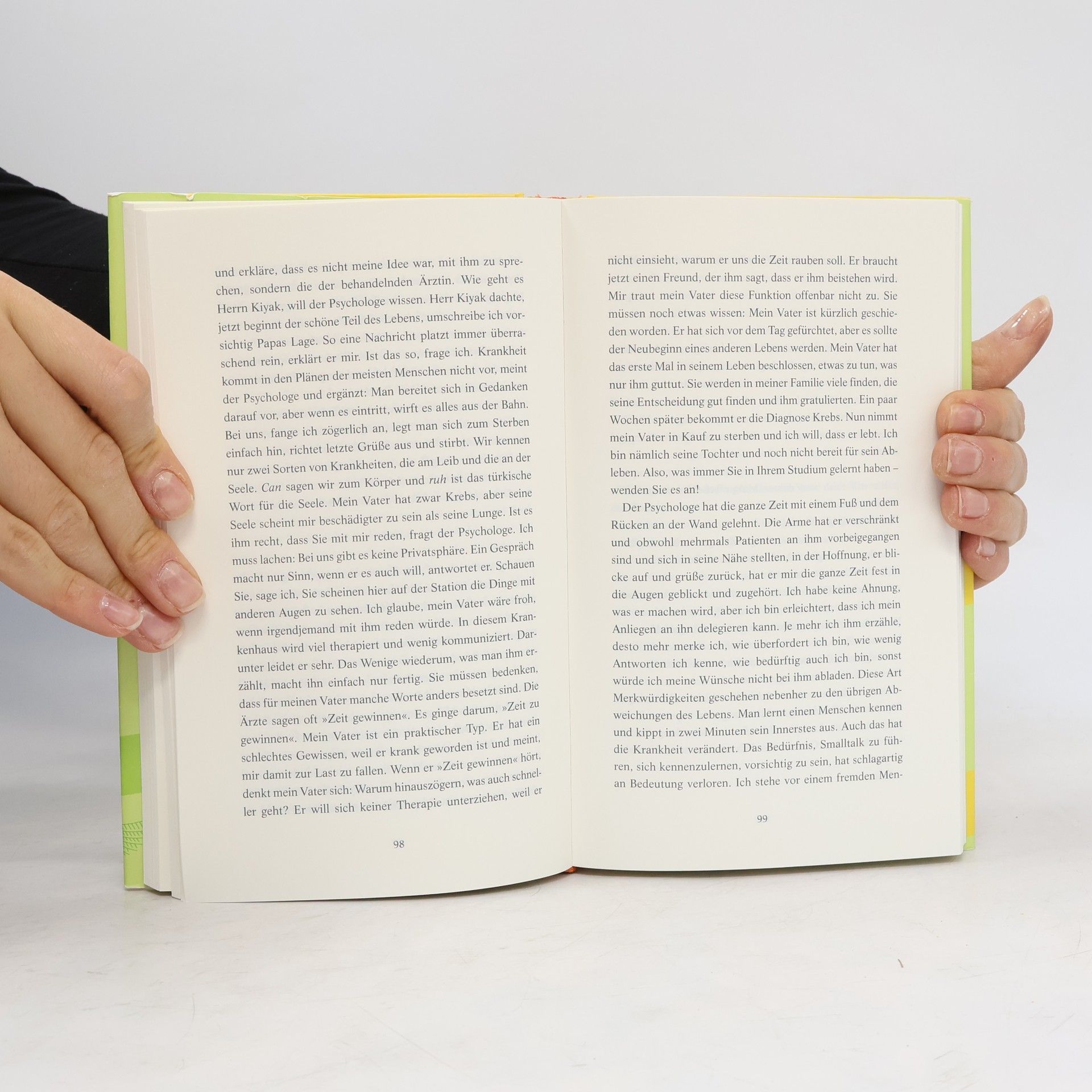 »Schon okay, Papa. Irgendwer versaut einem immer das Leben. Besser Du als jemand anders.« Herr Kiyak dachte, nun beginnt der schöne Teil des Lebens. Und wurde krank. Nicht eine Sekunde seines Lebens war er glücklich – meint er. »Quatsch«, sagt seine Tochter. »Du warst glücklich, Du hast es nur vergessen. Fang an zu erzählen!« Im Krankenbett, während der Chemotherapie - jede Gelegenheit nutzt Herr Kiyak, sich zu erinnern: an den Ofen des Propheten, der nicht wärmte, an seinen Bruder »den schrecklichen Ismo«, der nicht nur eine Mücke zum Krüppel schoss, und daran, dass alles verrückt blieb, obwohl er nach Deutschland zog. Während Mely Kiyak sich mit dem Tod auseinandersetzt, blüht ihr Vater auf und macht, was bei Kiyaks seit Generationen getan wird: Geschichten sammeln.