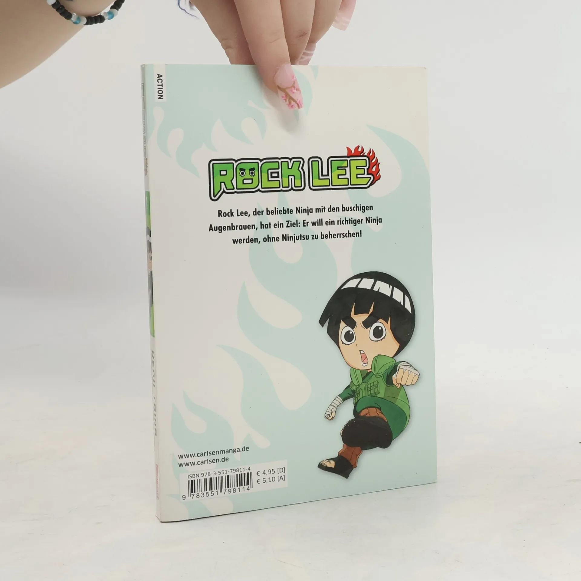 Rock Lee, ein Ninja aus Konohagakure, beherrscht absolut keine Ninja-Kampfkünste. Trotzdem will er ein richtiger Ninja werden und trainiert Tag für Tag, um sein Ziel über die vollkommene Beherrschung der Körperkünste zu erreichen. Zusammen mit seinen Kameraden Tenten und Neji in der Gruppe des heißblütigen Meisters Gai setzt er im Training und im Dienst seine volle Kraft ein! Auch heute lässt er mit Kameraden und Gegnern mal wieder all seine jugendliche Power explodieren!