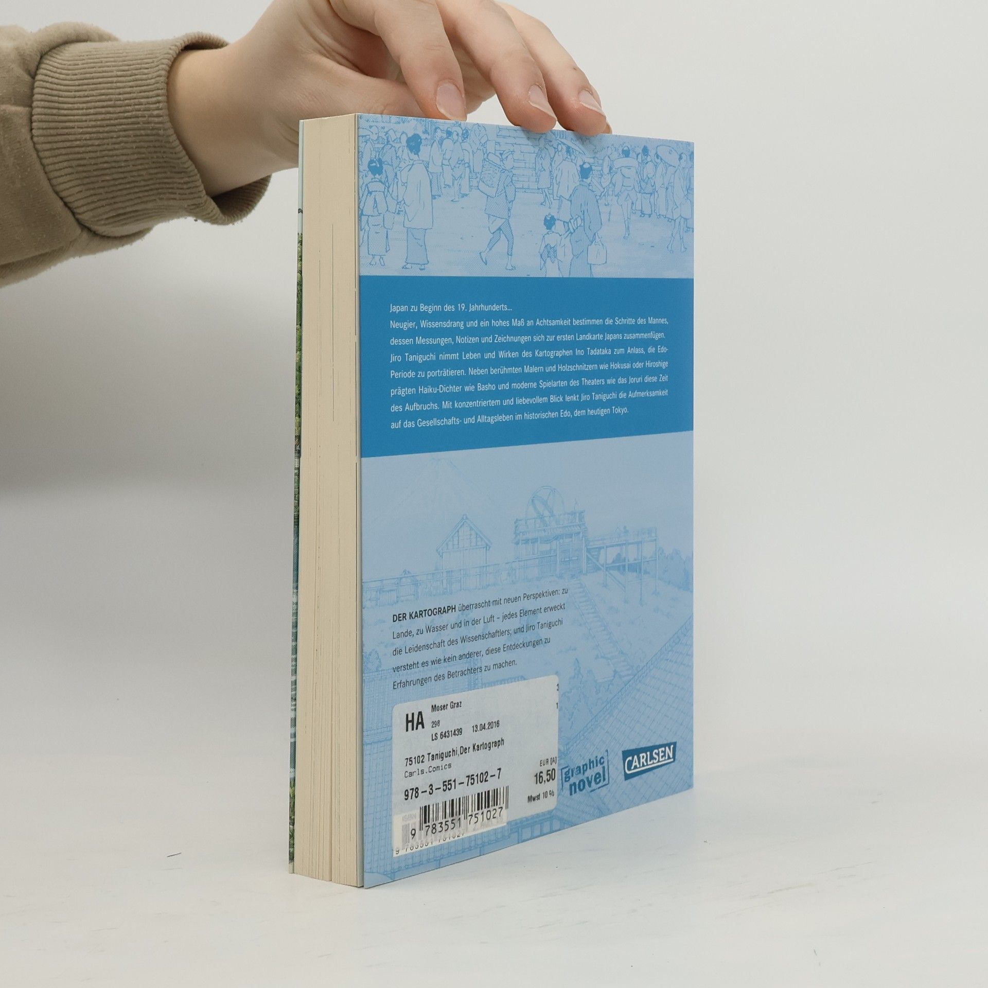 Japan zu Beginn des 19. Jahrhunderts… Neugier, Wissensdrang und ein hohes Maß an Achtsamkeit bestimmen die Schritte des Mannes, dessen Messungen, Notizen und Zeichnungen sich zur ersten Landkarte Japans zusammenfügen. Jiro Taniguchi nimmt Leben und Wirken des Kartographen Ino Tadataka zum Anlass, die Edo-Periode zu porträtieren. Neben berühmten Malern und Holzschnitzern wie Hokusai oder Hiroshige prägten Haiku-Dichter wie Basho und moderne Spielarten des Theaters wie das Joruri diese Zeit des Aufbruchs. Mit konzentriertem und liebevollem Blick lenkt Jiro Taniguchi die Aufmerksamkeit auf das Gesellschafts- und Alltagsleben im historischen Edo, dem heutigen Tokyo. DER KARTOGRAPH überrascht mit neuen Perspektiven: zu Lande, zu Wasser und in der Luft – jedes Element erweckt die Leidenschaft des Wissenschaftlers. Und wie kein anderer versteht es Jiro Taniguchi, die Entdeckungen des Kartographen zu Erfahrungen des Lesers und Betrachters zu machen.