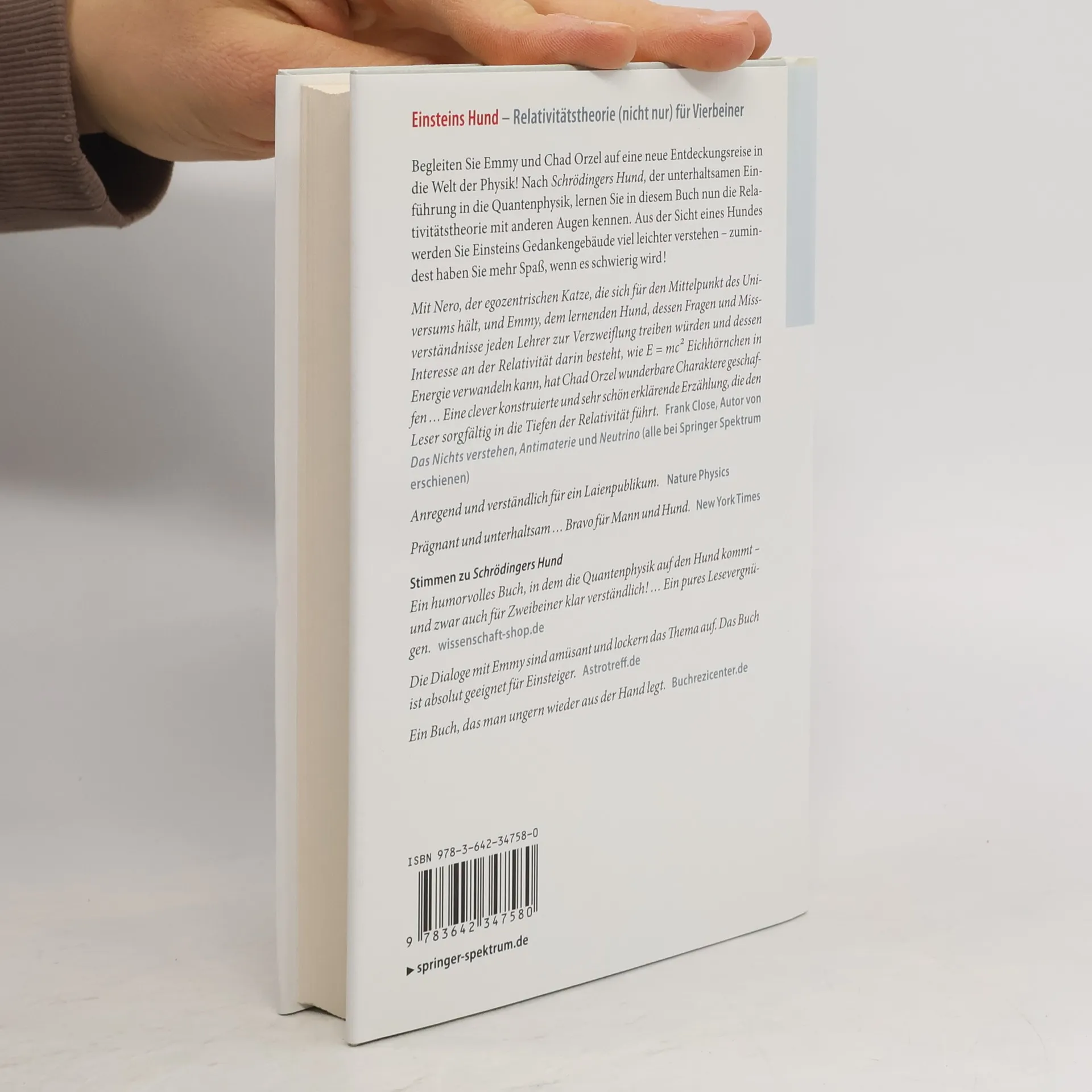 Begleiten Sie Emmy und Chad Orzel auf einer spannenden Entdeckungsreise in die Physik! Nach einer unterhaltsamen Einführung in die Quantenphysik lernen Sie hier die Relativitätstheorie aus einer neuen Perspektive kennen. Aus der Sicht eines Hundes wird Einsteins Gedankengebäude verständlicher – und es macht mehr Spaß, wenn es kompliziert wird! Mit Nero, der selbstverliebten Katze, und Emmy, dem neugierigen Hund, der mit Fragen und Missverständnissen jeden Lehrer herausfordert, hat Chad Orzel charismatische Charaktere geschaffen. Die Erzählung führt den Leser geschickt in die Tiefen der Relativität ein. Kritiker loben das Buch als anregend und verständlich für Laien. Die Dialoge zwischen Emmy und Orzel lockern das Thema auf und machen es für Einsteiger zugänglich. Emmy stellt oft unerwartete Fragen, die den Autor dazu zwingen, komplexe Sachverhalte neu zu erklären. In dieser Einführung in die Relativitätstheorie diskutieren Orzel und Emmy auf humorvolle Weise Konzepte wie die Verlangsamung der Zeit, die Auswirkungen der Gravitation auf Licht und Zeit, schwarze Löcher und die berühmte Gleichung E = mc². Gemeinsam mit Emmy entdecken Sie die bedeutendsten Aspekte der modernen Physik und lernen alles, was Sie im Unterricht vielleicht verpasst haben.