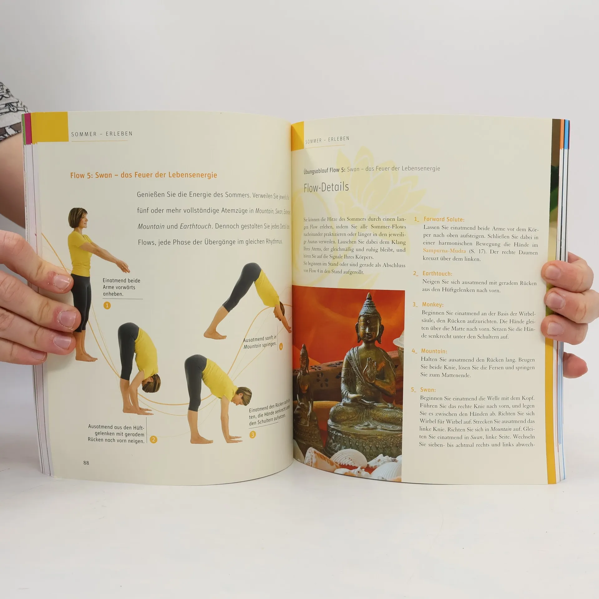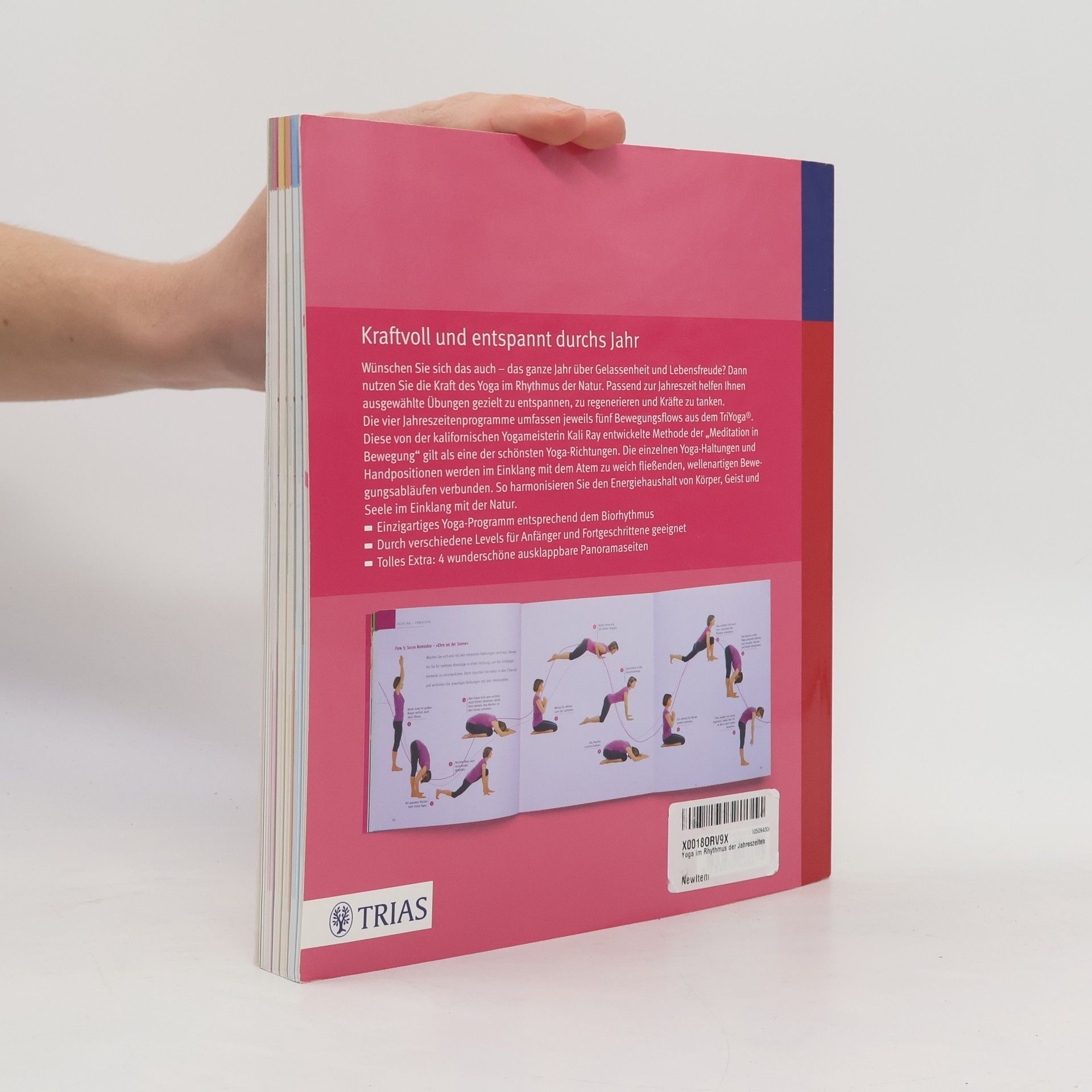 Kraftvoll und entspannt durchs Jahr Wünschen Sie sich das auch - das ganze Jahr über Gelassenheit und Lebensfreude? Dann nutzen Sie die Kraft des Yoga im Rhythmus der Natur. Passend zur Jahreszeit helfen Ihnen ausgewählte Übungen gezielt zu entspannen, zu regenerieren und Kräfte zu tanken. Die vier Jahreszeitenprogramme umfassen jeweils fünf Bewegungsflows aus dem TriYoga®. Diese von der kalifornischen Yogameisterin Kali Ray entwickelte Methode der „Meditation in Bewegung“ gilt als eine der schönsten Yoga-Richtungen. Die einzelnen Yoga-Haltungen und Handpositionen werden im Einklang mit dem Atem zu weich fließenden, wellenartigen Bewegungsabläufen verbunden. So harmonisieren Sie den Energiehaushalt von Körper, Geist und Seele im Einklang mit der Natur. - Einzigartiges Yoga-Programm entsprechend dem Biorhythmus - Durch verschiedene Levels für Anfänger und Fortgeschrittene geeignet - Tolles Extra: 4 wunderschöne ausklappbare Panoramaseiten Christiane Wolff ist staatlich geprüfte Sport- und Gymnastiklehrerin mit der Zusatzqualifikation Rückenschule, lizenzierte Pilates-Instruktorin und Yoga-Lehrerin. Sie arbeitet seit vielen Jahren als Sporttherapeutin und -lehrerin an verschiedenen Institutionen. Frau Wolff ist Co-Autorin des TRIAS Bestsellers „Medical Yoga“.