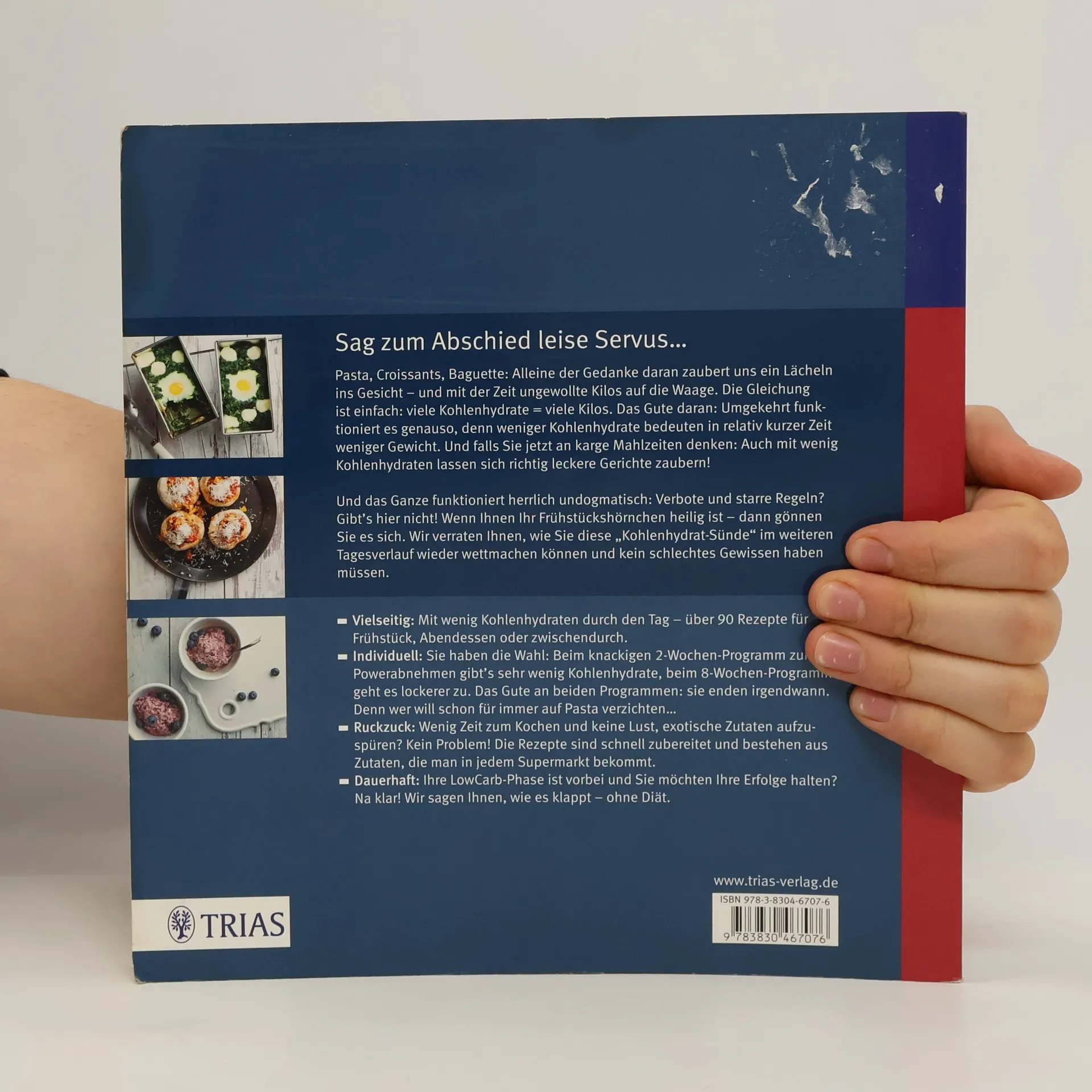 Pasta, Croissants, Baguette – allein der Gedanke daran zaubert ein Lächeln ins Gesicht und ungewollte Kilos auf die Waage. Die einfache Gleichung: viele Kohlenhydrate = viele Kilos. Doch weniger Kohlenhydrate führen in kurzer Zeit zu weniger Gewicht. Und keine Sorge: Auch mit wenig Kohlenhydraten lassen sich köstliche Gerichte zaubern! Hier gibt es keine Verbote oder strikten Regeln. Wenn Ihr Frühstückshörnchen heilig ist, gönnen Sie es sich! Wir zeigen Ihnen, wie Sie diese „Kohlenhydrat-Sünde“ im Laufe des Tages ausgleichen können, ohne ein schlechtes Gewissen zu haben. - Vielseitig: Über 90 Rezepte für Frühstück, Abendessen oder Snacks mit wenig Kohlenhydraten. - Individuell: Wählen Sie zwischen einem strengen 2-Wochen-Programm oder einem lockereren 8-Wochen-Programm. Beide enden irgendwann – denn wer möchte schon für immer auf Pasta verzichten? - Ruckzuck: Keine Zeit oder Lust auf exotische Zutaten? Die Rezepte sind schnell zubereitet und bestehen aus Zutaten, die in jedem Supermarkt erhältlich sind. - Dauerhaft: Ihre Low-Carb-Phase ist vorbei, und Sie möchten Ihre Erfolge halten? Wir zeigen Ihnen, wie das ohne Diät funktioniert. Claudia Lenz hat sich schon früh für alternative Ernährungsformen interessiert und ihre persönlichen Erfahrungen mit wertvollem Fachwissen aus ihrem Studium der Ernährungswissenschaft ergänzt. Sie hat die Vorteile einer kohlenhydratarmen Ernährung selbst erlebt und ist überzeugt von deren pos