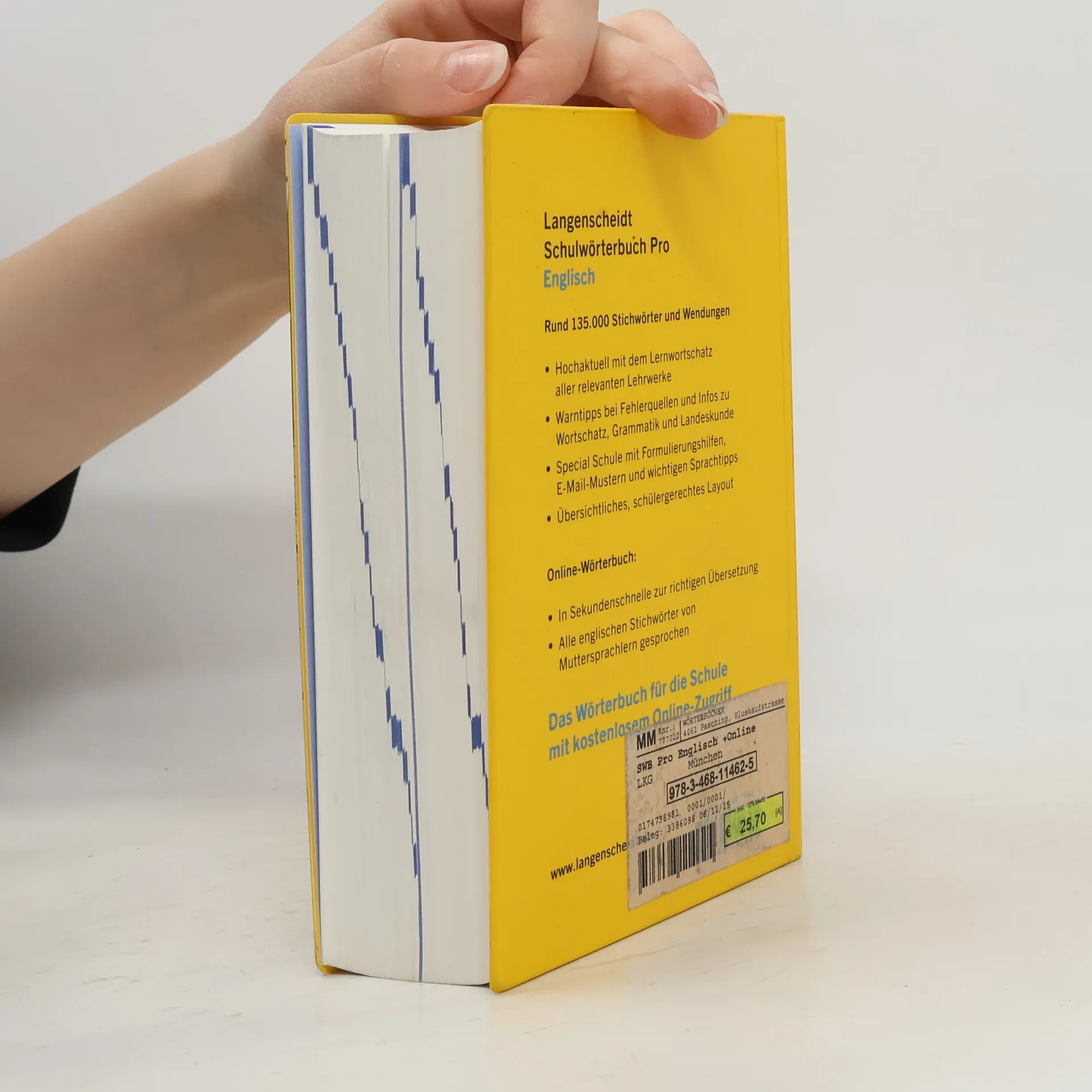 Das ideale Englisch-Wörterbuch für die Schule mit dem Wortschatz aller Lehrwerke. Mit Hörbeispielen online und Lautschrift im Buch. Dazu Infos zu Grammatik und Landeskunde, Lerntipps und Kommunikationshilfen. Für alle Schüler bis zum Abi. Rund 135.000 Stichwörter und Wendungen. Unabhängig vom verwendeten Lehrwerk: Für alle Schüler bis zum Abitur Lerntipps und Warnhinweise bei möglichen Fehlerquellen E-Mail-Vorlagen und Briefmuster speziell für Schüler Schulrelevante Extras zur Kommunikation mit nützlichen Sätzen für den Unterricht, typischen Sprachfallen, Informationen zur Aussprache etc. Vom Marktführer Langenscheidt, Deutschlands Wörterbuch-Verlag Nr. 1