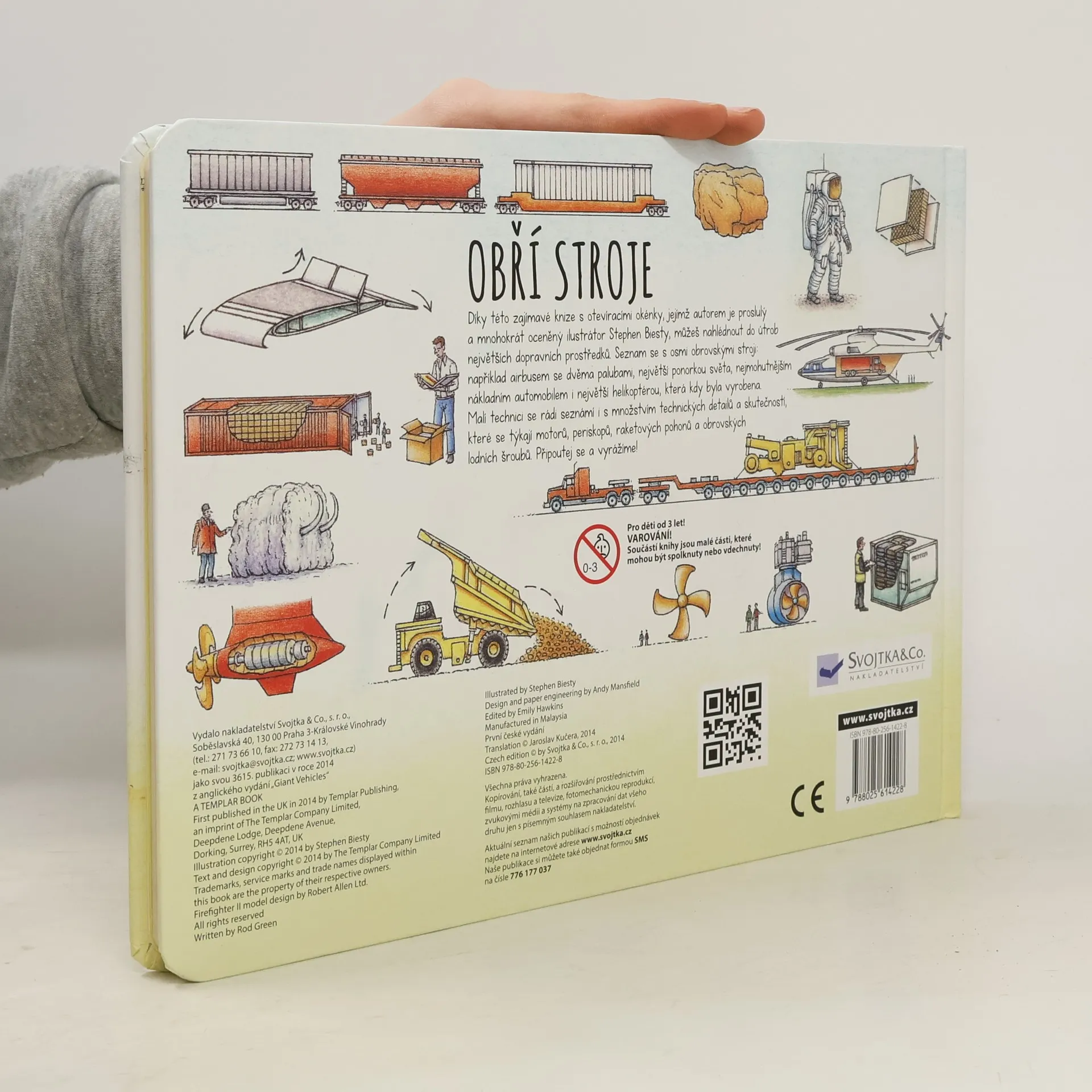 Seznam se s osmi obrovskými stroji – díky této objevné knize s otevíracími okénky můžeš nahlédnout do útrob největších dopravních prostředků. Díky této zajímavé knize s otevíracími okénky můžeš nahlédnout do útrob největších dopravních prostředků. Seznam se s osmi obrovskými stroji – od airbusu se dvěma palubami a největší ponorky světa přes nejmohutnější nákladní automobil až po největší helikoptéru, která kdy byla vyrobena. Malí technici se jistě rádi seznámí i s množstvím technických detailů a skutečnostmi, které se týkají motorů, periskopů, raketových pohonů a obrovských lodních šroubů. Připoutejte se tedy, vyrážíme!
