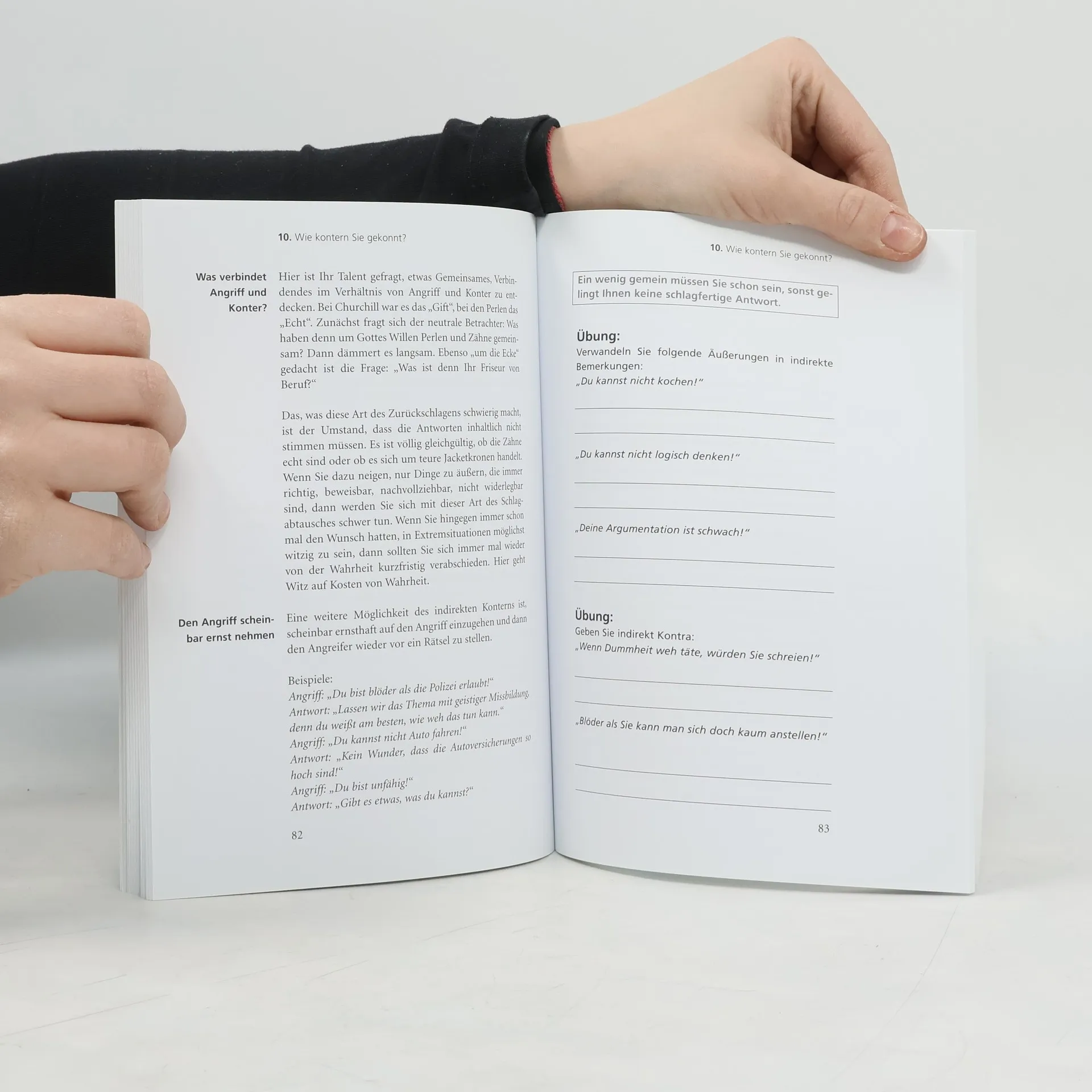 Wer kennt sie nicht - die Situationen, in denen einem erst nach Stunden eine schlagfertige Antwort auf eine unverschämte oder freche Bemerkung einfällt? Dieses Buch trainiert die Schlagfertigkeit. Es stellt verschiedene Techniken vor, die Ihnen helfen, zur richtigen Zeit eine schlagkräftige Antwort zu finden. Das Besondere diese Buches: Es bietet auch Anleitungen für diejenigen, denen ein eloquentes Kontern nicht ins Naturell gelegt wurde. Hier bringt die Technik des bewussten „Niederschweigens“ erstaunliche Erfolge: Bleiben Sie ganz bewusst stumm und bringen Sie Ihr Gegenüber durch entsprechendes Auftreten und eine überlegene Körpersprache in die schwächere Position.