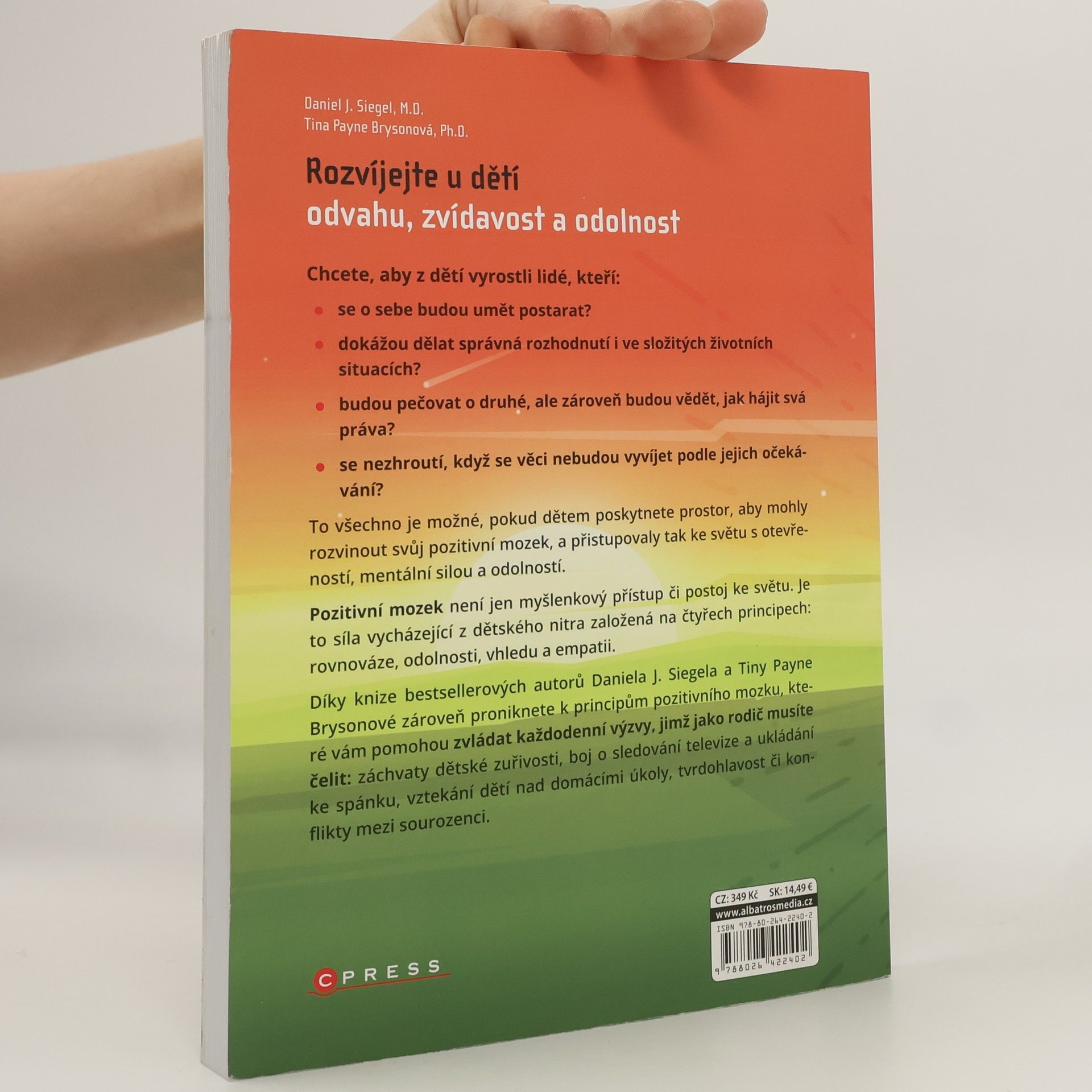 Chcete, aby z dětí vyrostli lidé, kteří: • se o sebe budou umět postarat? • dokážou dělat správná rozhodnutí i ve složitých životních situacích? • budou pečovat o druhé, ale zároveň budou vědět, jak hájit svá práva? • se nezhroutí, když se věci nebudou vyvíjet podle jejich očekávání? To všechno je možné, pokud dětem poskytnete prostor, aby mohly rozvinout svůj pozitivní mozek, a přistupovaly tak ke světu s otevřeností, mentální silou a odolností. Pozitivní mozek není jen myšlenkový přístup či postoj ke světu. Je to síla vycházející z dětského nitra založená na čtyřech principech: rovnováze, odolnosti, vhledu a empatii. Díky knize bestsellerových autorů Daniela J. Siegela a Tiny Payne-Brysonové zároveň proniknete k principům pozitivního mozku, které vám pomohou zvládat každodenní výzvy, jimž jako rodič musíte čelit: záchvaty dětské zuřivosti, boj o sledování televize a ukládání ke spánku, vztekání dětí nad domácími úkoly, tvrdohlavost či konflikty mezi sourozenci.