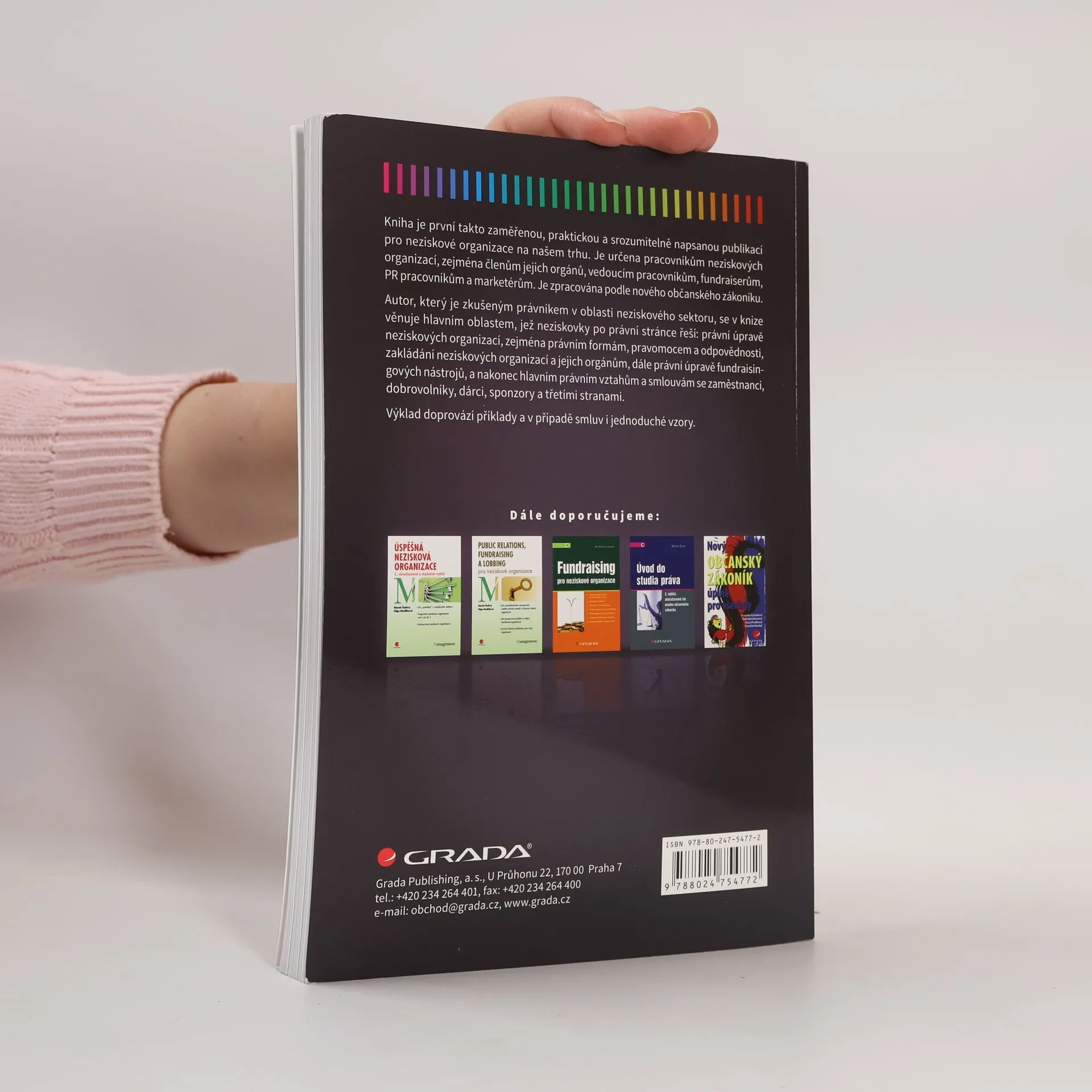 Kniha je první takto zaměřenou, praktickou a srozumitelně napsanou publikací pro neziskové organizace na našem trhu. Je určena pracovníkům neziskových organizací, zejména členům jejich orgánů, vedoucím pracovníkům, fundraiserům, PR pracovníkům a marketérům. Je zpracována podle nového občanského zákoníku. Autor, který je zkušeným právníkem v oblasti neziskového sektoru, se v knize věnuje hlavním oblastem, jež neziskovky po právní stránce řeší: právní úpravě neziskových organizací, zejména právním formám, pravomocem a odpovědnosti, zakládání neziskových organizací a jejich orgánům, dále právní úpravě fundraisingových nástrojů, a nakonec hlavním právním vztahům a smlouvám se zaměstnanci, dobrovolníky, dárci, sponzory a třetími stranami. Výklad doprovází příklady a v případě smluv i jednoduché vzory.