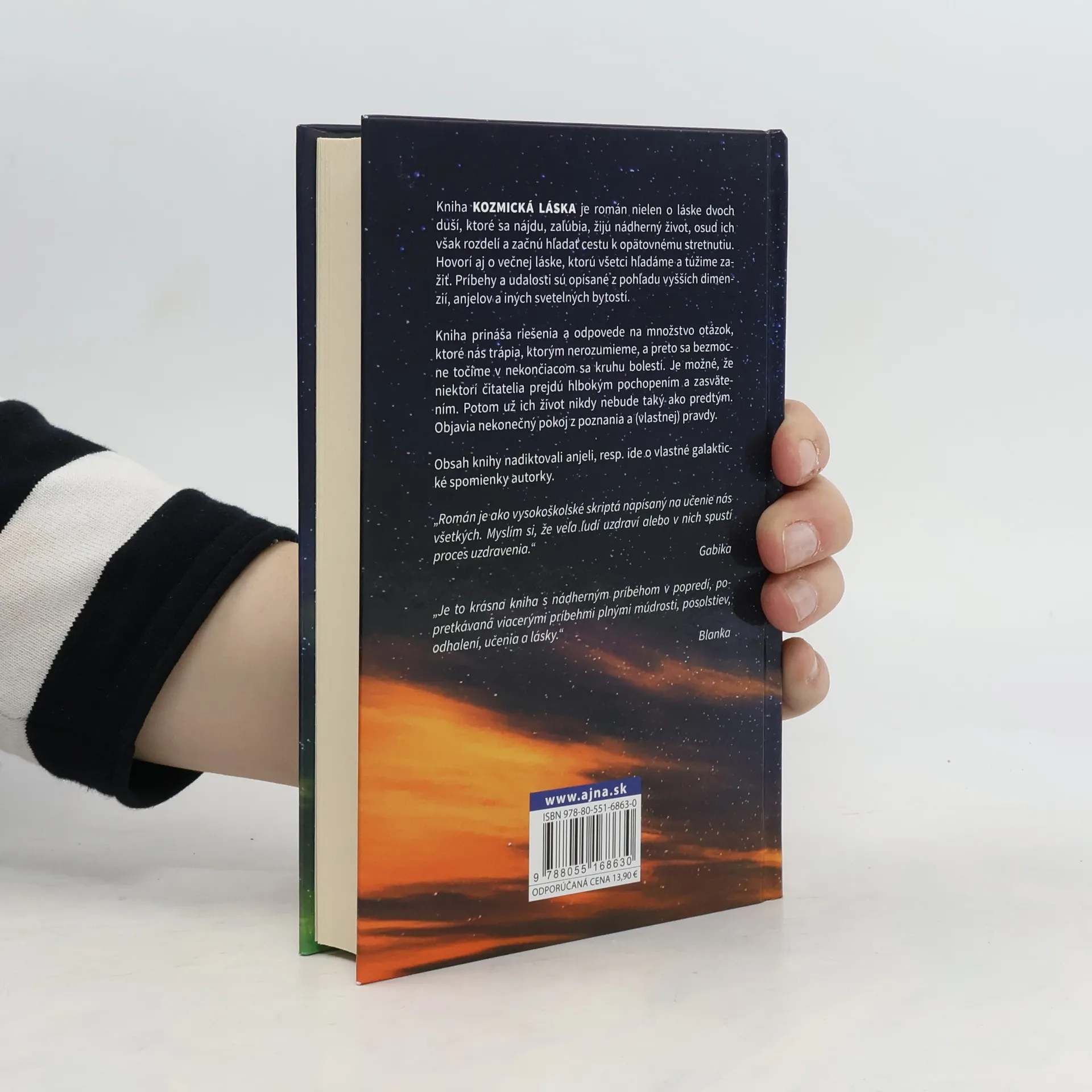 Kniha Kozmická láska je román nielen o láske dvoch duší, ktoré sa nájdu, zaľúbia, žijú nádherný život, osud ich však rozdelí a začnú hľadať cestu k opätovnému strenutiu. Hovorí aj o večnej láske, ktorú všetci hľadáme a túžime zažiť. Príbehy a udalosti sú opísané z pohľadu vyšších dimenzií, anjelov a iných svetelných bytostí. Kniha prináša riešenia a odpovede na množstvo otázok, ktoré nás trápia, ktorým nerozumieme,a preto sa bezmocne točíme v nekončiacom sa kruhu bolestí. Je možné, že niektorí čitatelia prejdú hlbokým pochopením a zasvätením. Potom už ich život nikdy nebude ako predtým. Objavia nekonečný pokoj z poznania a (vlastnej) pravdy.