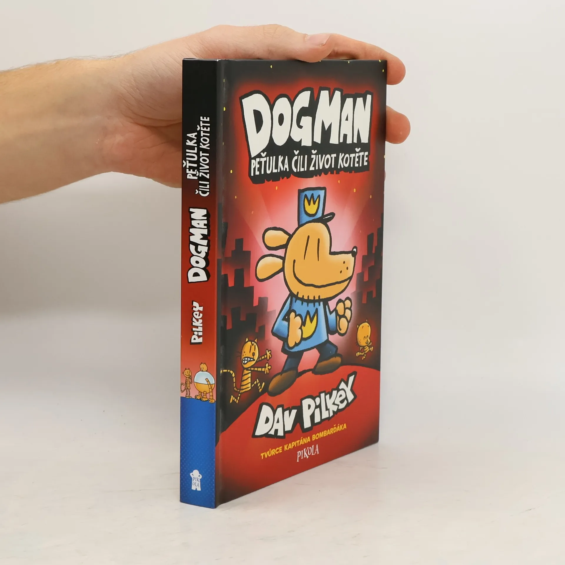 Hrdina s psí hlavou se představuje ve světově proslulém komiksu! Dogman je nejpřítulnější ze všech psů a nikdo by nehádal, že je zároveň nejobávanější strážce zákona v ulicích zlotřilého města! Když se dobře známému lotrovi Péťovi narodí malý Péťa, je tady dvojí problém. A pro nejlepšího policajta všech dob dvakrát tolik práce! Slavný tvůrce komiksových příběhů Dav Pilkey přináší další díl veleúspěšné série o Dogmanovi, která se usídlila na předních místech v žebříčcích nejprodávanějších knih. Komiks je určený dětem od 7 let.