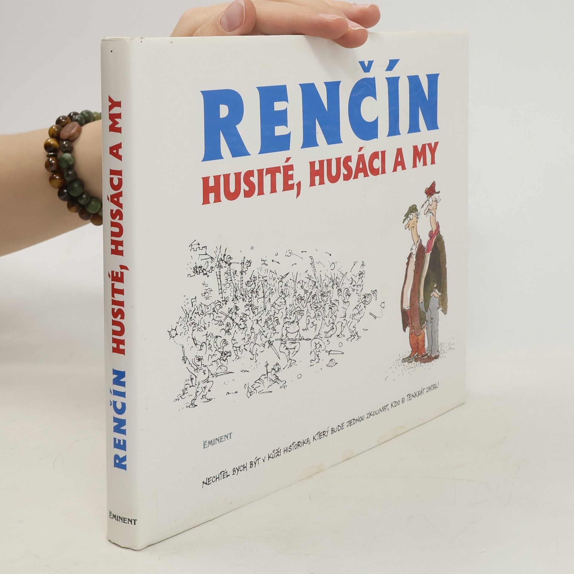 Téma husitství se vine celým dílem Vladimíra Renčína. Stalo se pro něj zdrojem neutuchající inspirace a nečekaných historických paralel. Jeho kresby a Vavřinec z Březové se svojí slavnou Husitskou kronikou a Písní o vítězství u Domažlic jsou klíčem k unikátní a nadčasové knize HUSITÉ, HUSÁCI A MY, nabízející vydatnou exkurzi do pohnutých okamžiků dějin našich zemí. Texty středověkého kronikáře samy o sobě humorné nejsou, ovšem ve spojení s klasikem českého kresleného humoru dostávají zcela nečekaný náboj. Turbulentní dobu husitských bouří přitom mnohdy posouvají z vážna do grotesky a překvapivě často přimějí čtenáře k zamyšlení nad tím, proč se dějiny někdy tak nečekaně opakují.