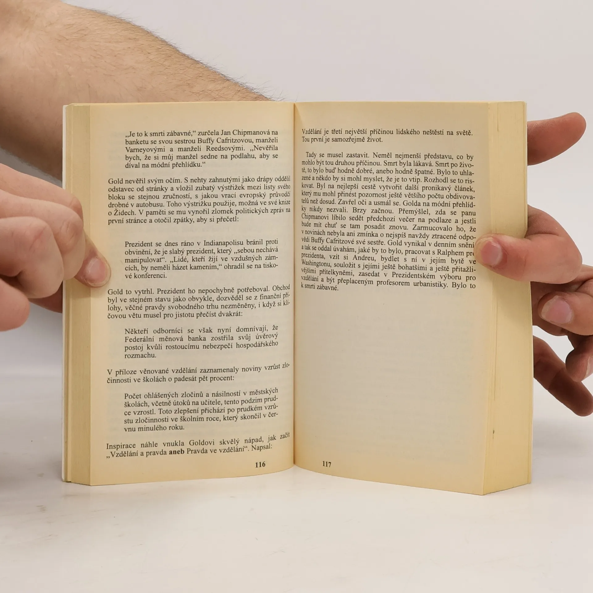 Třetí román Josepha Hellera, kde se opět projevila jeho pověst jízlivého satirika a moralisty swiftovského ražení. Jde o frašku napadající americkou vládní mašinérii a lidskou zkorumpovanost mocí, za kterou člověk platí ztrátou kulturních kořenů, z nichž vzešel.