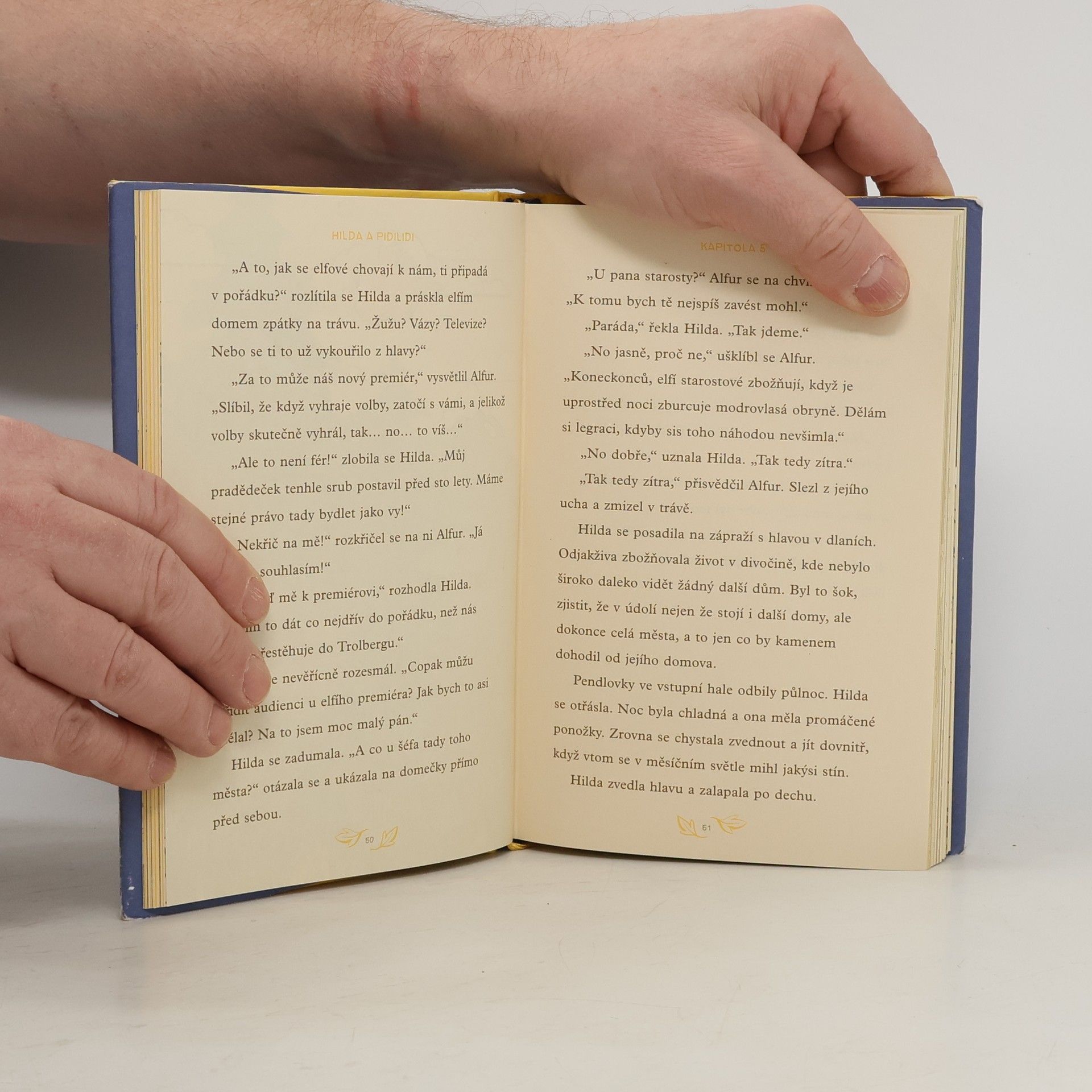 Tohle je Hilda, průzkumnice, dobrodružka a fanynka kamenů. Na světě má nejradši dvě věci: svůj skicák a psa Větvíka. Tedy, na světě má nejradši tři věci: svůj skicák, psa Větvíka a maminku. Pardon, na světě má nejradšisvůj skicák, psa Větvíka, maminku a všechny nadpřirozené bytosti a příšerky, které žijí u nich v údolí. Hildina dobrodružství nejprve uchvátila čtenářky a čtenáře komiksů, poté vznikl animovaný seriál od Netflixu a nyní je tu knižní série. Prožijte s Hildou znovu její první setkánís trollem nebo s párem zamilovaných obrů. Pro skalní fanynky a fanoušky nabízí kniha desítky nových ilustrací a rozšíření smyšlené krajiny, do které se tak rádi vracíme. A pokud jste o Hildě nikdy neslyšeli, máme pro vás dvě otázky: Na co čekáte? A bolí oči hodně, když člověk poprvé vyleze z jeskyně?