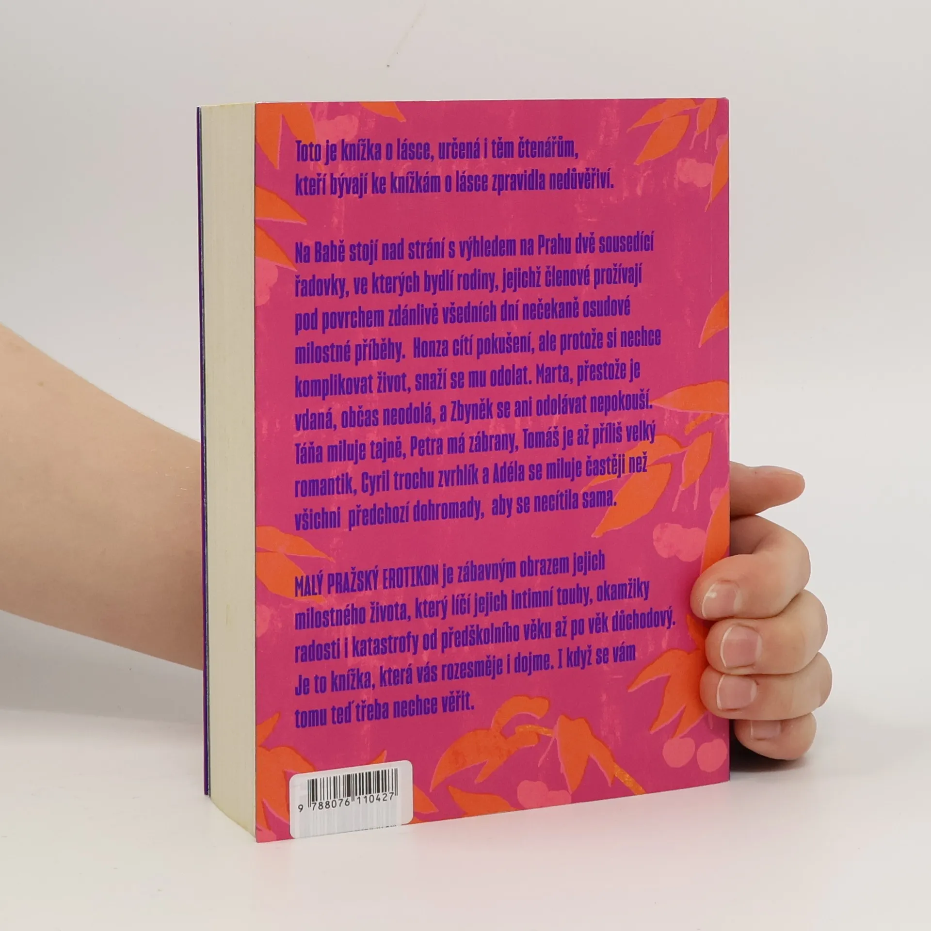 Román sledující životní příběh dvou sousedských párů z pražské čtvrti Baba v letech 1975-2005. Na Babě stojí nad strání s výhledem na Prahu dvě sousedící řadovky, ve kterých bydlí rodiny, jejichž členové prožívají pod povrchem zdánlivě všedních dní nečekaně osudové milostné příběhy. Honza cítí pokušení, ale protože si nechce komplikovat život, snaží se mu odolat. Marta, přestože je vdaná, občas neodolá, a Zbyněk se ani odolávat nepokouší. Táňa miluje tajně, Petra má zábrany, Tomáš je až příliš velký romantik, Cyril trochu zvrhlík a Adéla se miluje častěji, než všichni předchozí dohromady, aby se necítila sama. Malý pražský erotikon je zábavným obrazem jejich intimního života, který líčí jejich touhy, okamžiky radosti i katastrofy od předškolního věku až po věk důchodový. Nakladatelská anotace.
