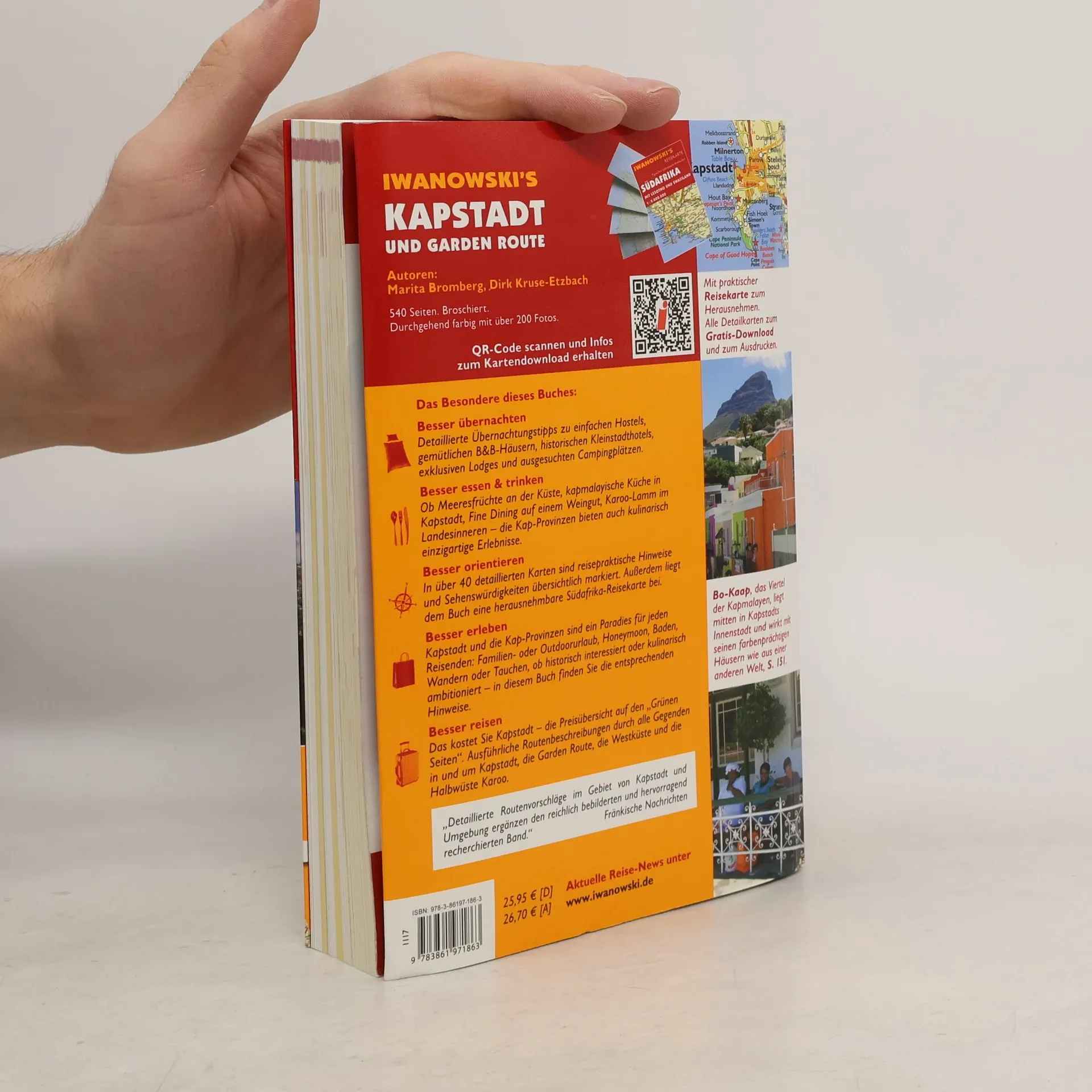 Die Kapregion gehört zu den schönsten und beliebtesten Urlaubsregionen in Südafrika: Das kreative Flair Kapstadts mit seiner atemberaubenden Lage am Ozean, die grandiose Küste mit Sandstränden, Walen und Pinguinen sowie das abwechslungsreiche Hinterland mit seinen Weingütern bieten ideale Voraussetzungen für einen Individualurlaub. Seit rund 20 Jahren zählt das Reisehandbuch „Kapstadt und Garden Route“ zu den zuverlässigen Informationsquellen für Mietwagen- und Wohnmobilfahrer. Auf 540 Seiten besticht es durch eine Fülle an praktischen Reisetipps – allein 100 Seiten mit vielen Empfehlungen und Tipps zu Nightlife, Kunstszene, Shopping und Essen & Trinken sind der „Mother City“ Kapstadt gewidmet. Neun Routenvorschläge, darunter ein- bis dreiwöchige Rundreisen zu Themen wie „Auf den Spuren der ersten Europäer“ oder „Flora und Fauna der Kapprovinzen“. Die beste Reisezeit ist von November bis April. In den Küstenregionen kann man von Juni bis November besonders gut Wale beobachten. •Sehr beliebtes Reiseziel auch aufgrund des günstigen Wechselkurses •Ideal für Individualreisende, die mit dem Mietwagen oder Wohnmobil unterwegs sind •Rund 40 Detailkarten können per QR-Code kostenfrei auf das Smartphone oder den Tablet-PC geladen werden