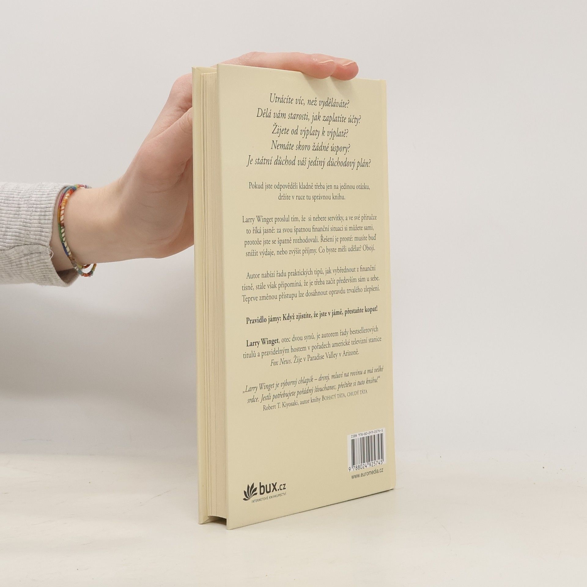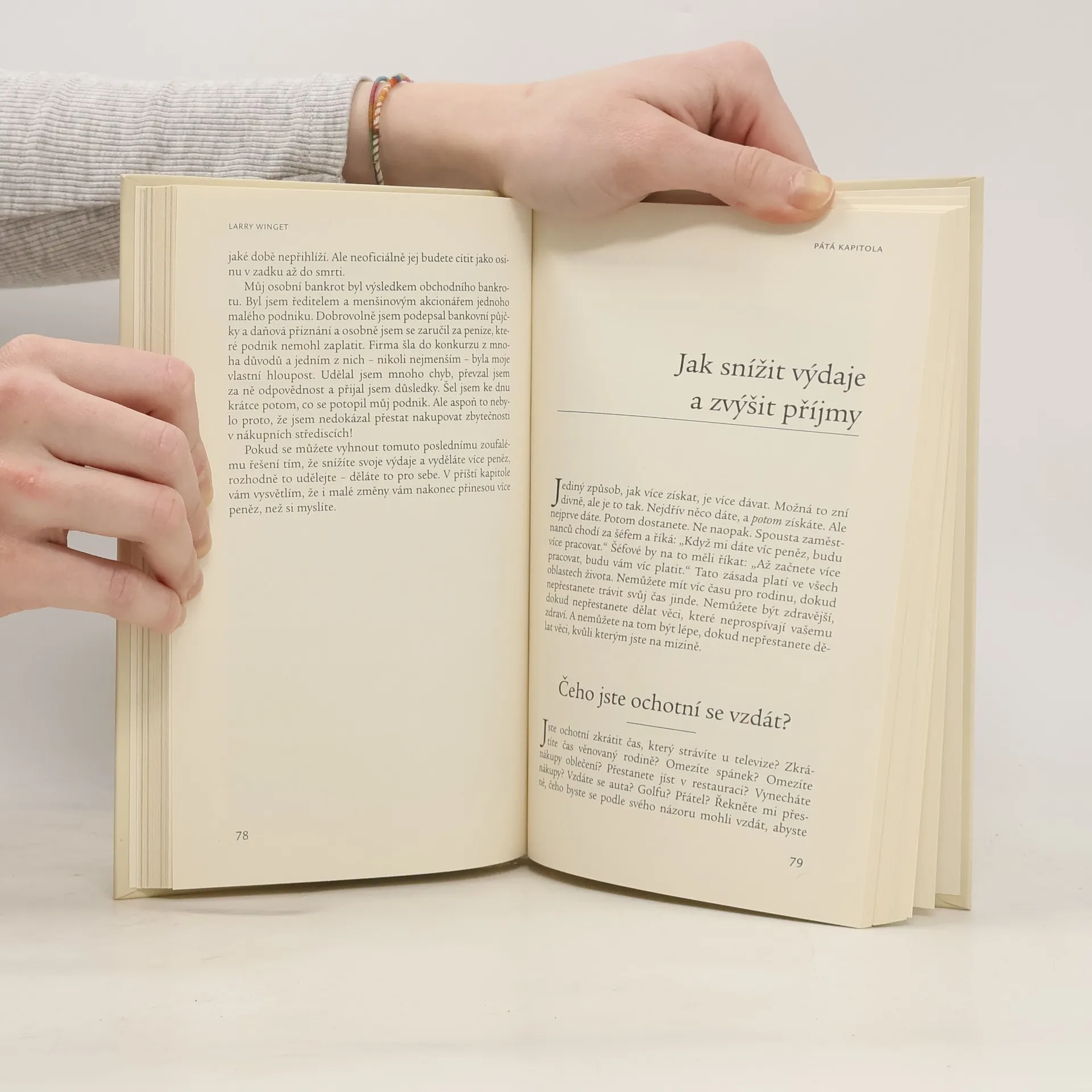 Jak vyjít s penězi. Autor si bere na paškál neschopnost lidí vydělat si a vyjít s penězi. Podle hesla „Pokud jste na mizině, můžete si za to sami“ se obrací na čtenáře a rovnou začíná: „Výmluvy mě nezajímají, tak se zvedněte z gauče a něco udělejte.“ Pak přicházejí na řadu jednotlivé tipy – čtenář se učí, jak si ujasnit základní cíle, sledovat výdaje, spočítat si rozpočet, určit si priority (autor zdůrazňuje klíčové životní hodnoty, jako je rodina a děti), nedělat dluhy a včas platit složenky, prostě užívat zdravý selský rozum, na který jako by se dnes zapomínalo.
