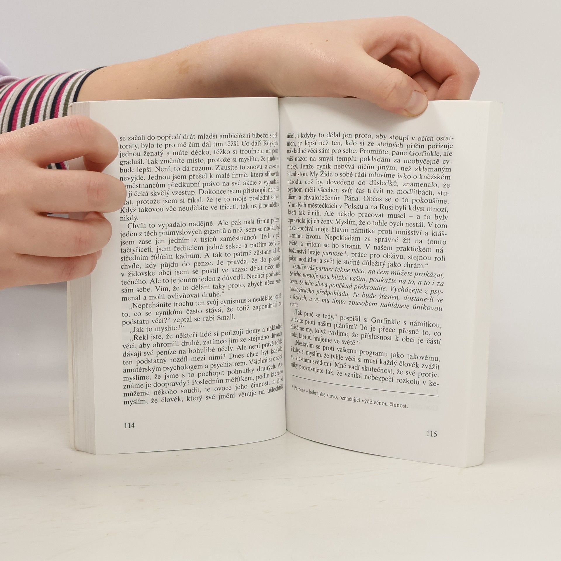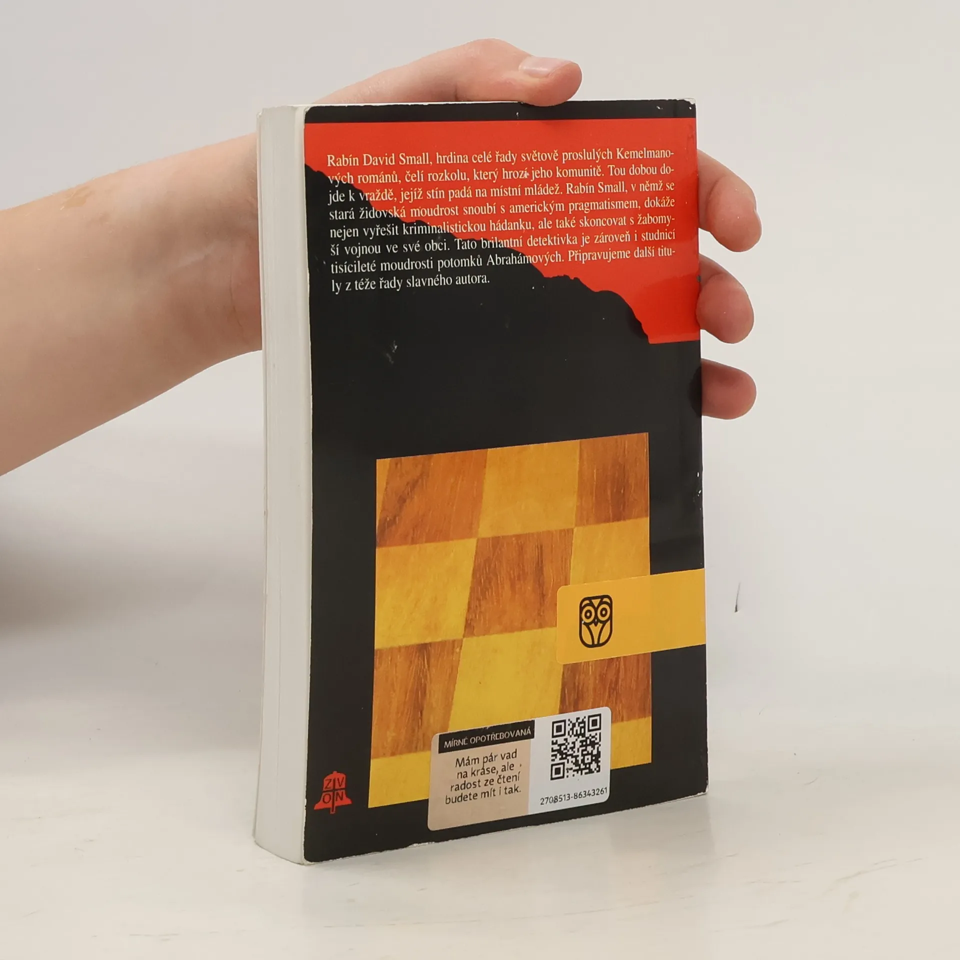 Rabín David Small, hrdina celé řady světově proslulých Kemelmanových románů, čelí rozkolu, který hrozí jeho komunitě. Tou dobou dojde k vraždě, jejíž stín padá na místní mládež. Rabín Small, v němž se stará židovská moudrost snoubí s americkým pragmatismem, dokáže nejen vyřešit kriminalistickou hádanku, ale také skoncovat s žabomyší vojnou ve své obci. Tato brilantní detektivka je zároveň i studnicí tisícileté moudrosti potomků Abrahámových.