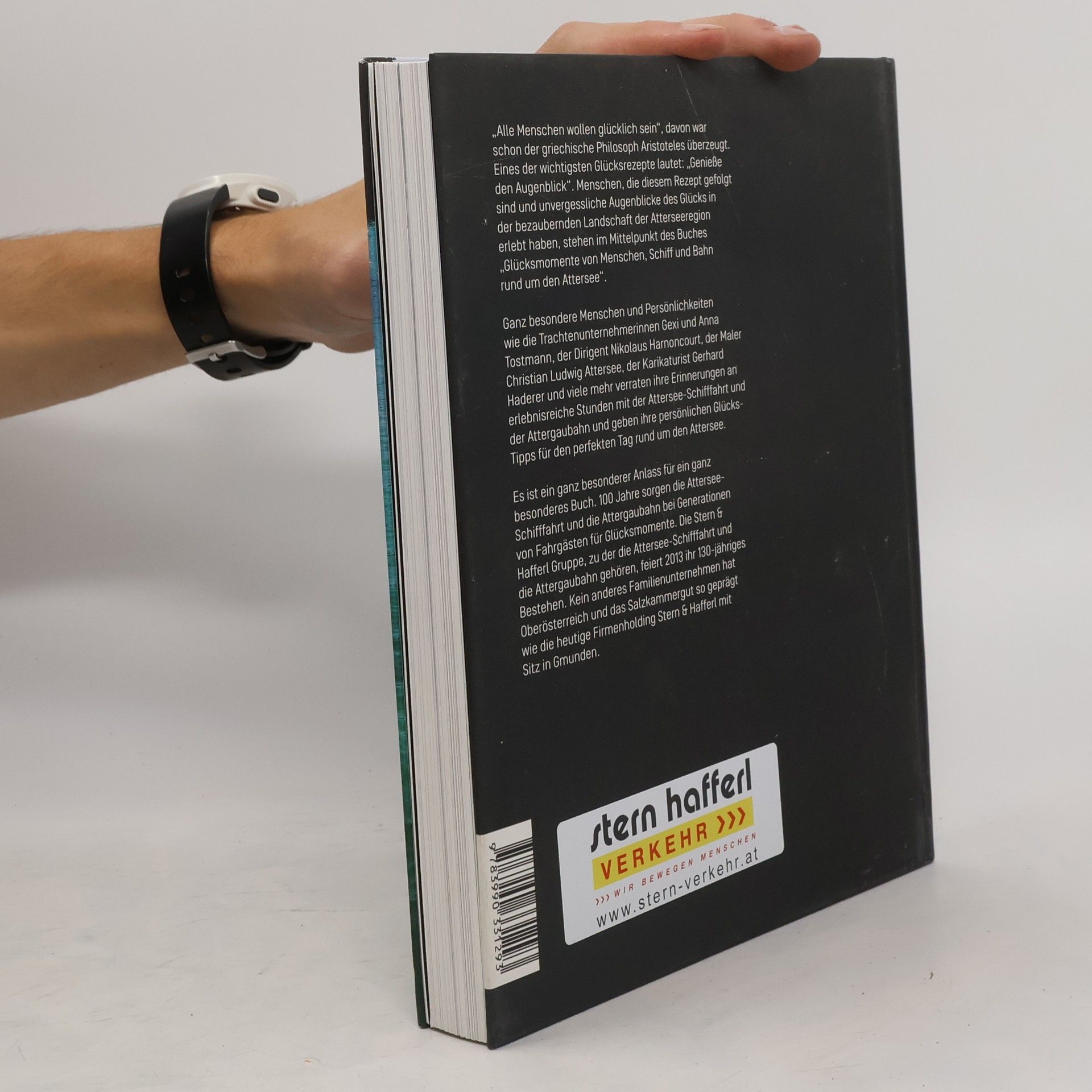 „Alle Menschen wollen glücklich sein“, meinte bereits Aristoteles. Wäre Glück ein rezeptpflichtiges Medikament, es wäre das meistverschriebene mit nur positiven Nebenwirkungen. Ein zentrales Rezept für Glück lautet: „Genieße den Augenblick“. Im Fokus stehen Menschen, die unvergessliche Glücksmomente in der malerischen Atterseeregion erlebt haben. Persönlichkeiten wie die Trachtenunternehmerinnen Gexi und Anna Tostmann, Dirigent Nikolaus Harnoncourt, Maler Christian Ludwig Attersee, Kunstsammlerin Dr. Elisabeth Leopold, Peter Weinhäupl, Karikaturist Gerhard Haderer und „Stanglwirtin“ Maria Hauser teilen ihre Erinnerungen an erlebnisreiche Stunden mit der Attersee-Schifffahrt und der Attergaubahn und geben persönliche Tipps für einen perfekten Tag am Attersee. Das Buch erscheint anlässlich eines doppelten Jubiläums: 2013 feiern die Attersee-Schifffahrt und die Attergaubahn ihren 100. Geburtstag unter der Stern & Hafferl-Flagge. Diese beiden Jubilare sind durch zahlreiche Glücksmomente verbunden. „Glücksmomente“ ist die ideale Lektüre für Liebhaber der Atterseeregion und jene, die sich von persönlichen Glücksmomenten und Tipps bekannter Persönlichkeiten inspirieren lassen möchten. Zudem bietet das Buch einen Einblick in die beeindruckende Geschichte des Familienunternehmens Stern & Hafferl, das in diesem Jahr sein 130-jähriges Bestehen feiert.