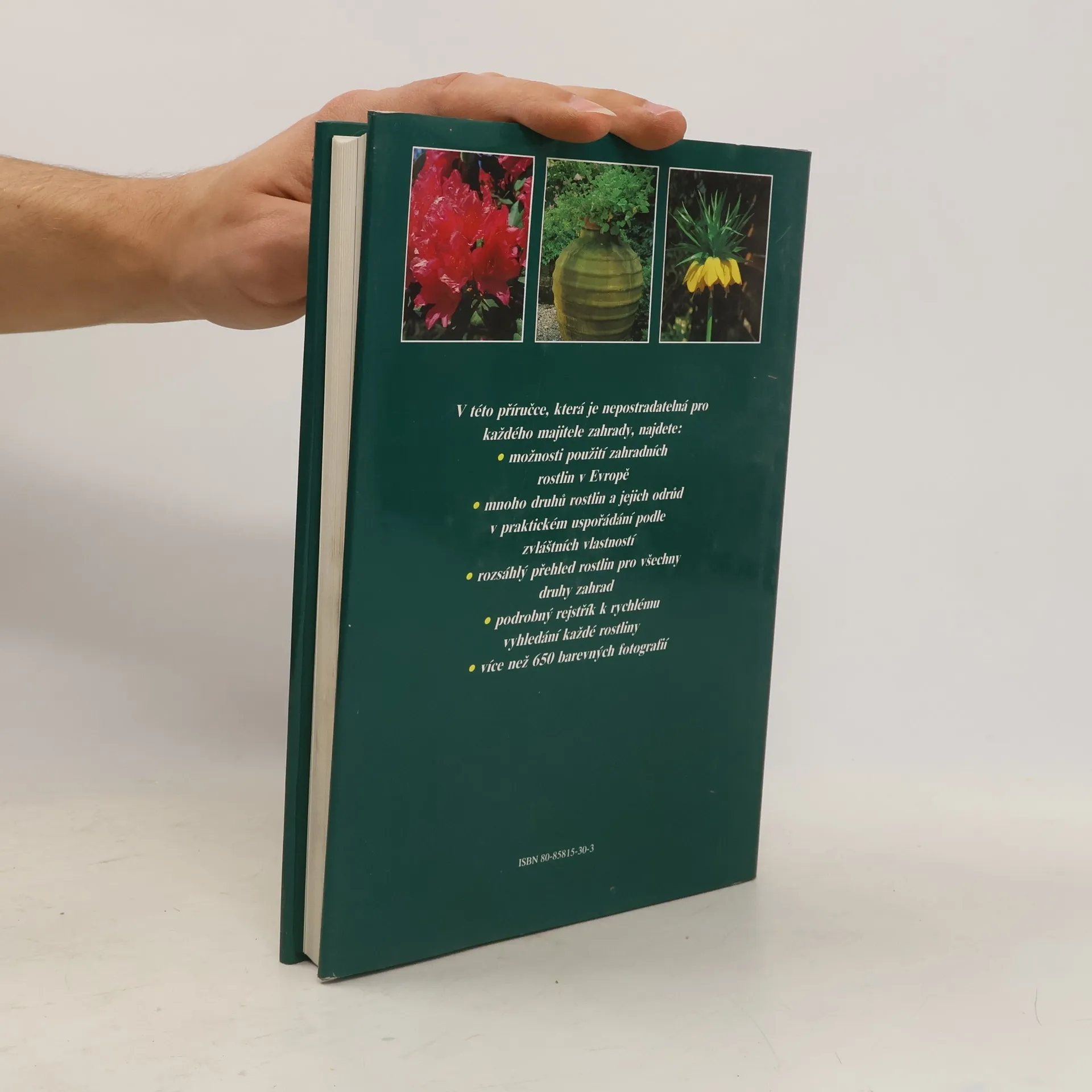 V této příručce , která jenepostadatelná pro každého majitelezahrady, najdete: -mnoho druhů rostlin a jejich odrůd, v praktickém uspořádání podle zvláštních vlastností -rozsáhlý přehled rostlin pro šechny drujy zahrad - více než 650 barevných fotografií
