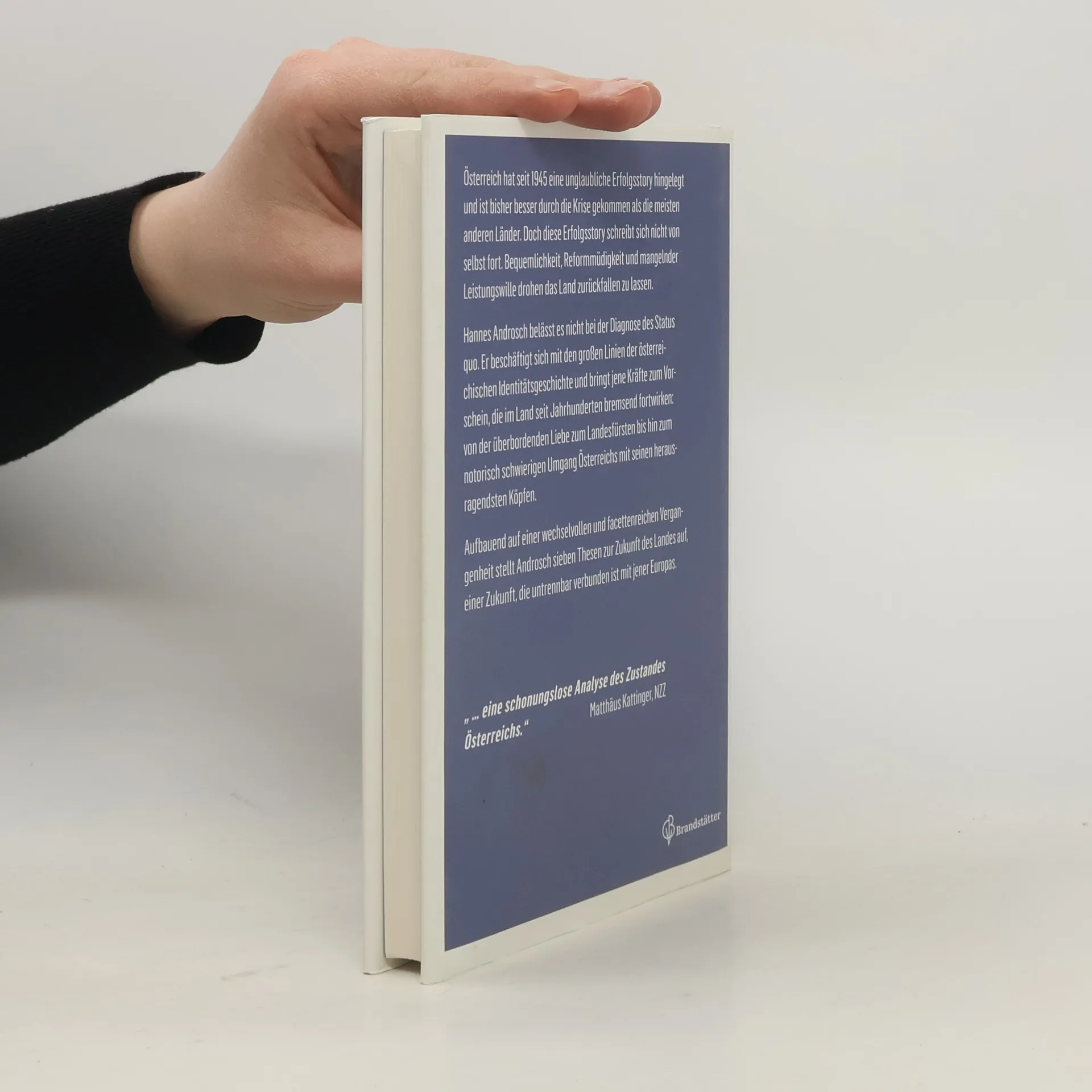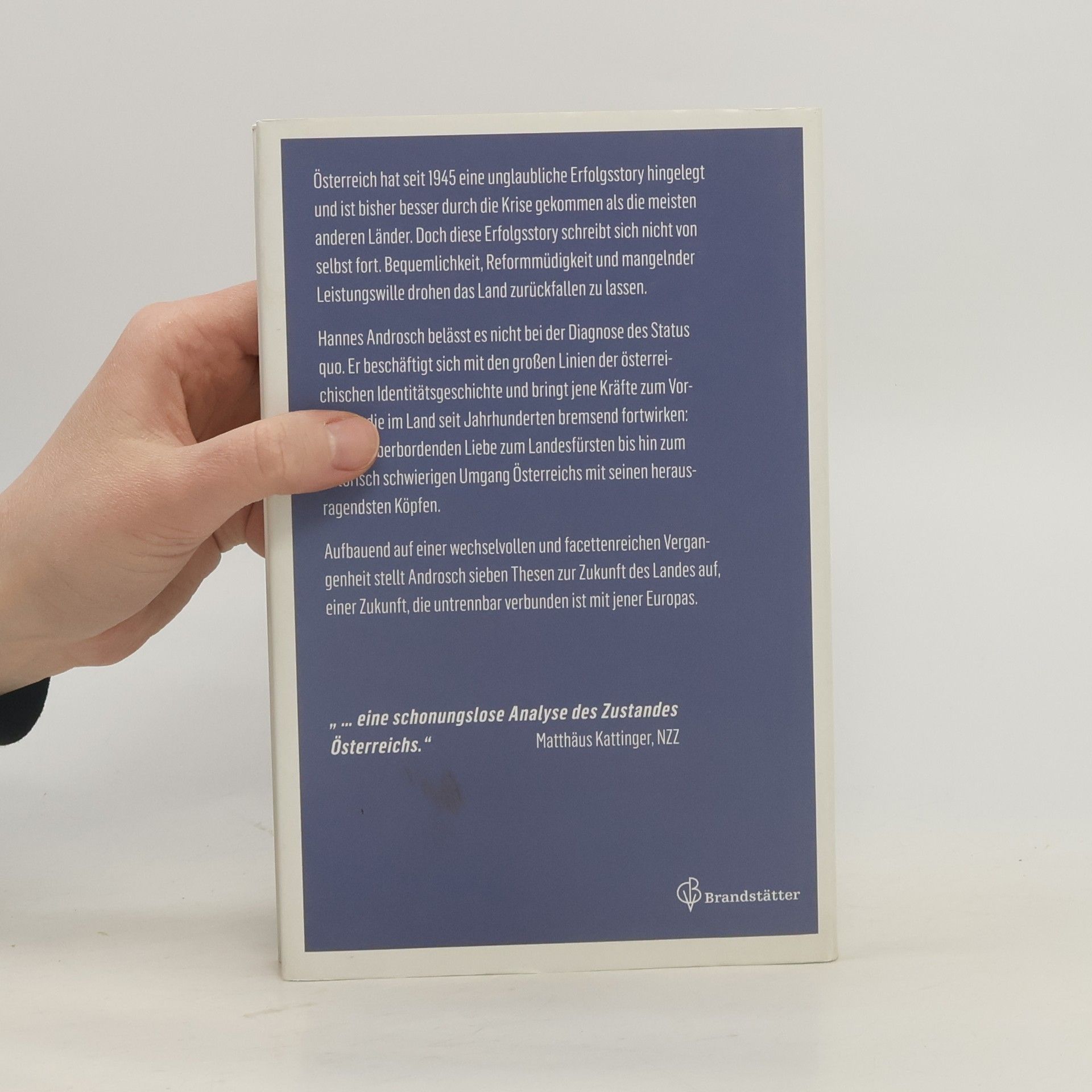 Österreich hat seit 1945 eine unglaubliche Erfolgsstory hingelegt und ist bisher besser durch die Krise gekommen als die meisten anderen Länder. Doch diese Erfolgsstory schreibt sich nicht von selbst fort. Bequemlichkeit, Reformmüdigkeit und mangelnder Leistungswille drohen das Land zurückfallen zu lassen, schreibt Hannes Androsch. Der frühere Finanzminister belässt es nicht bei der Diagnose des Status Quo. Er beschäftigt sich mit den großen Linien der österreichischen Identitäts-Geschichte und bringt jene Kräfte zum Vorschein, die im Land seit Jahrhunderten bremsend fortwirken: Von der überbordenden Liebe zum Landesfürsten bis hin zum notorisch schwierigen Umgang Österreichs mit seinen herausragendsten Köpfen. Aufbauend auf einer wechselvollen und facettenreichen Vergangenheit stellt Androsch sieben Thesen zur Zukunft des Landes auf. Und diese Zukunft ist untrennbar verbunden mit jener Europas: Warum der europäische Wohlfahrtsstaat reformiert werden muss, wie den neuen Polit-Populisten des Kontinents das Wasser abgegraben werden kann und was ein Europa ohne Euro bedeuten würde, sind deshalb Schlüsselpassagen dieser streitbaren Schrift.
