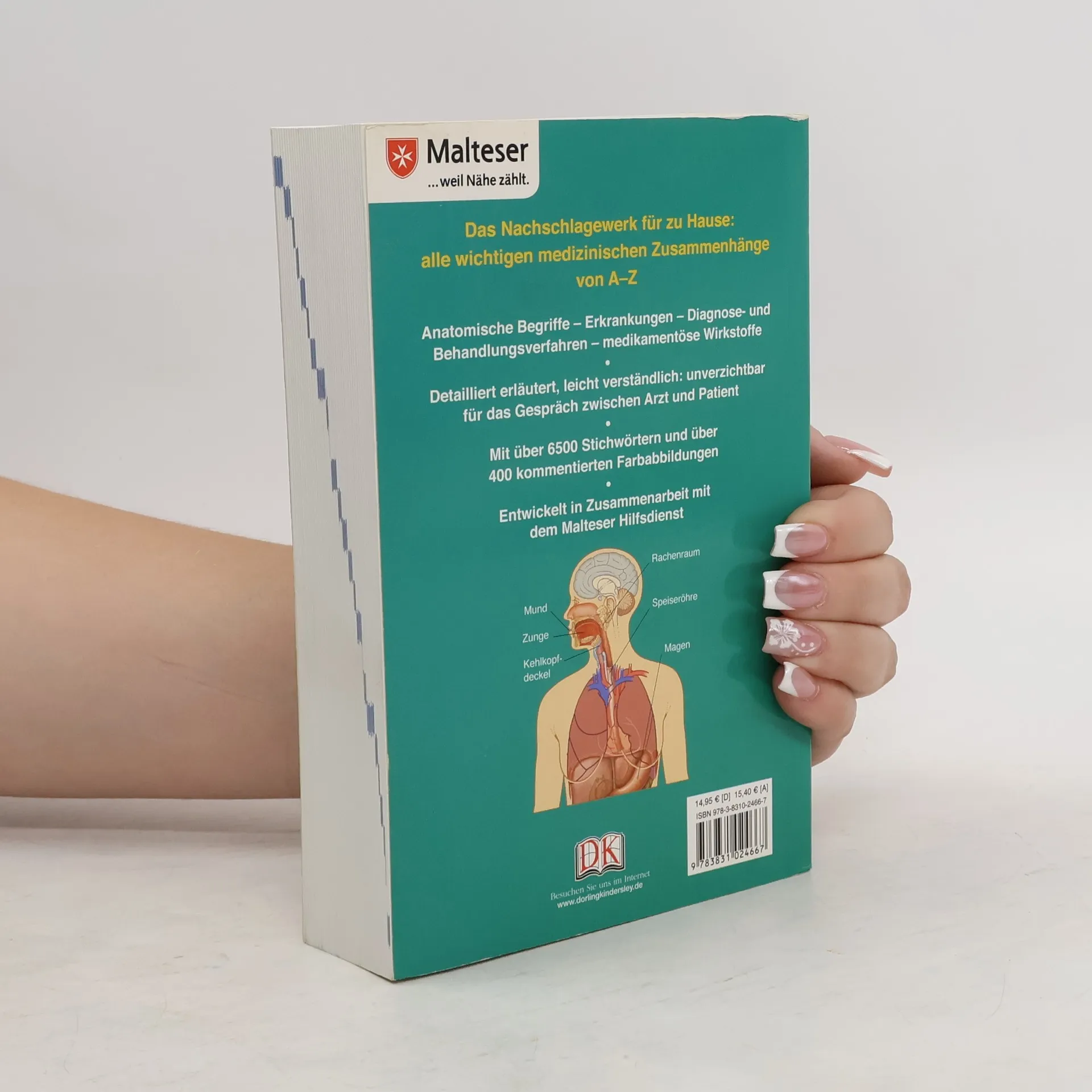 Bestens informiert: Dieses kompetente Nachschlagewerk sollte in keinem Haushalt fehlen! Das „Patienten-Lexikon“ erklärt über 6500 medizinische Fachbegriffe von Abschürfung bis Zahnschmerz wissenschaftlich exakt und verständlich für jedermann. Detaillierte Einträge zu Anatomie, Erkrankungen, Untersuchungsverfahren, Behandlungsmethoden und Medikamenten bieten leicht zugängliche Informationen. Mehr als 400 farbige Illustrationen veranschaulichen auch komplexe Sachverhalte. Weiterführende Querverweise ermöglichen einen schnellen Überblick und erleichtern die Orientierung. Ein wertvoller Helfer für die Kommunikation mit Ärzten sowie für die Wahl der passenden Behandlungsmethode. Entstanden in Zusammenarbeit mit dem Malteser Hilfsdienst.