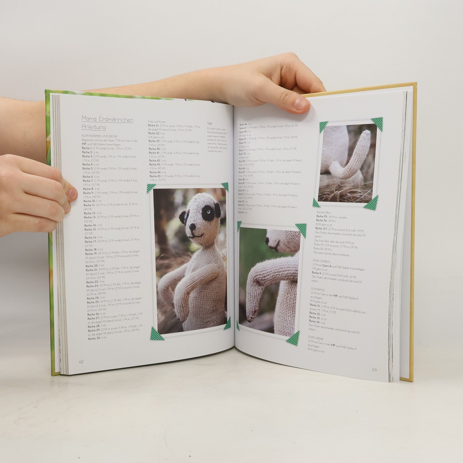 Wo die wilden Tiere wohnen Exotische Kuscheltiere, aus bunter Wolle gestrickt und mit viel Liebe zum Detail ausgearbeitet, warten in den entlegensten Ecken der Welt auf ihre Entdeckung. Die Reise mit Ed, dem Forscher, führt in den tiefen Dschungel zu Affen und Tigern; er begegnet Henry Hippo und Gerry Giraffe, und im hohen Norden laufen ihm die Eisbärin Patsy und ein rotnasiges Rentier über den Weg. Die 15 „wilden“ Figuren gelingen dank der einfachen Anleitungen und nützlichen Tipps zu Techniken und Ausarbeitung auch Strickanfängerinnen mühelos.