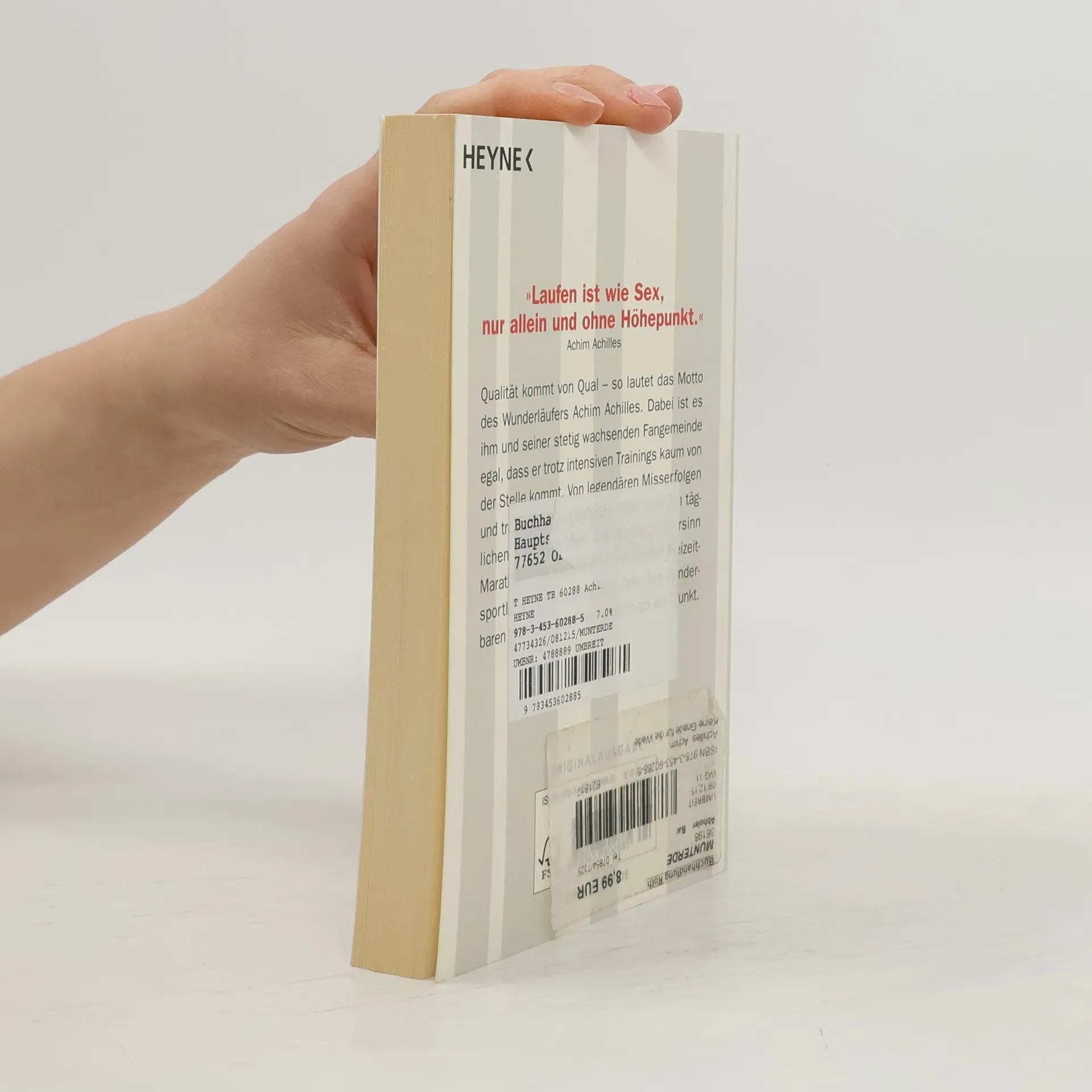 Schwitzen ist, wenn Muskeln weinen Qualität kommt von Qual – so lautet das Motto des Wunderläufers Achim Achilles. Dabei ist es ihm und seiner stetig wachsenden Fangemeinde egal, dass er trotz intensiven Trainings kaum von der Stelle kommt. Von legendären Misserfolgen und traumatischen Lauferlebnissen über den täglichen Kampf mit dem Krampf bis zum Irrsinn Marathon – in seinem neuen Buch bringt Deutschlands bekanntester Freizeitsportler wieder schonungslos lustig den wunderbaren Wahnsinn des Sports auf den Punkt.