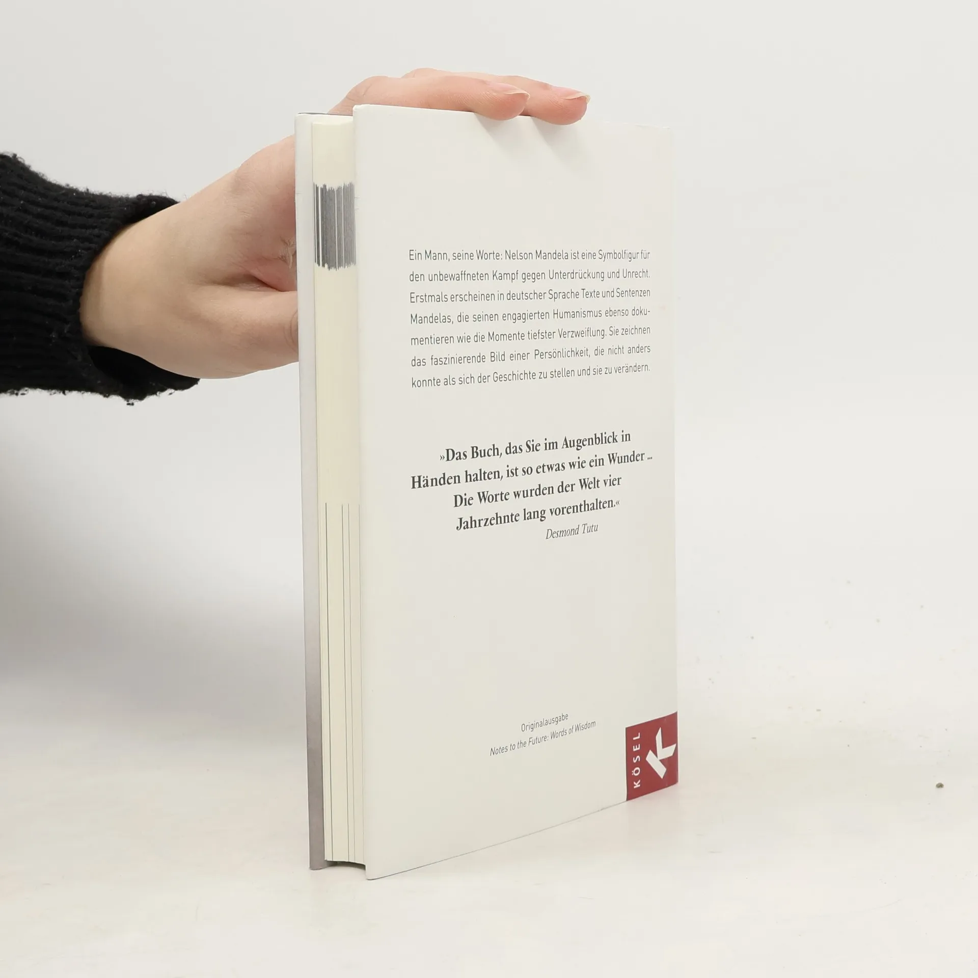 Das Buch ist eine Sammlung der beeindruckendsten und historisch bedeutsamsten Zitate von Nelson Mandela. Die über 300 Zitate stammen exklusiv aus dem persönlichen Mandela-Archiv und wurden über 60 Jahre lang gesammelt. Ein inspirierendes, bewegendes Buch, das zum Nachdenken anregt. In den universellen und zutiefst persönlichen Zitaten erkennt man Mandelas Sinn für Humor, seine Einsamkeit und Verzweiflung, seine Gedanken und den zögernden Menschen, der keine andere Wahl hatte, als sich der Geschichte zu stellen. Ergänzt wird diese einzigartige Sammlung mit der großen Dankesrede Mandelas zur Verleihung des Friedensnobelpreises aus dem Jahr 1993.